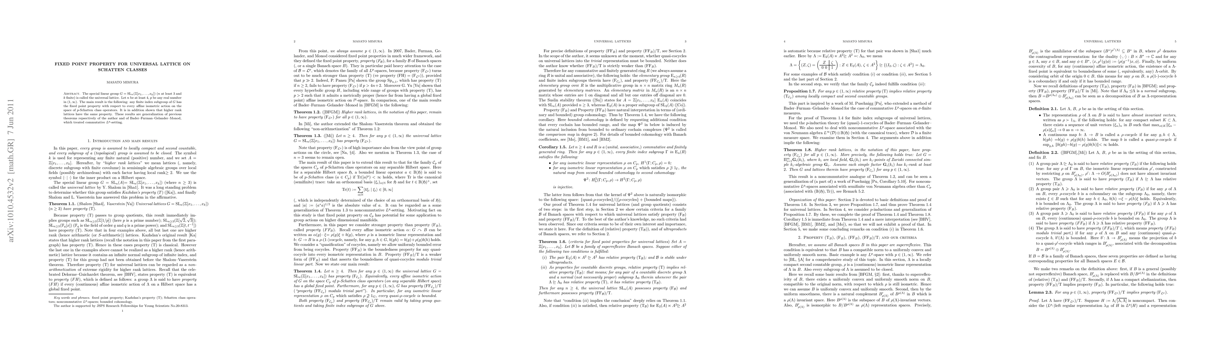 A research paper establishes that finite index subgroups of a universal lattice have the fixed point property for affine isometric actions on p-Schatten class operators, extending previous results to non-commutative Lp-setting.
