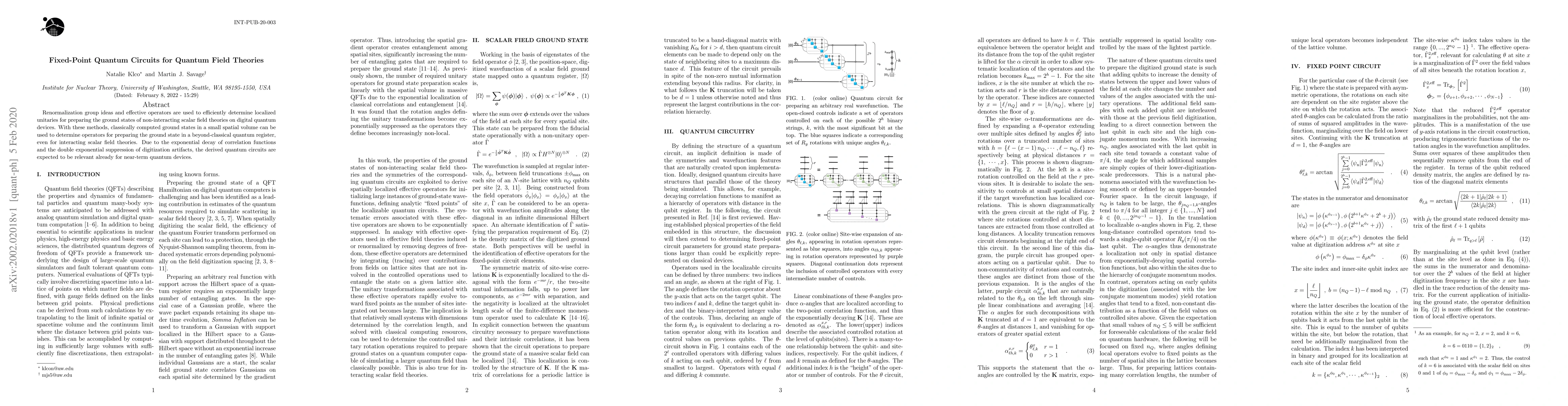 Summary: This paper presents a method for efficiently preparing ground states of non-interacting scalar field theories using fixed-point quantum circuits, leveraging renormalization group techniques to minimize digitization artifacts. These circuits are anticipated to function effectively even on near-term quantum devices.