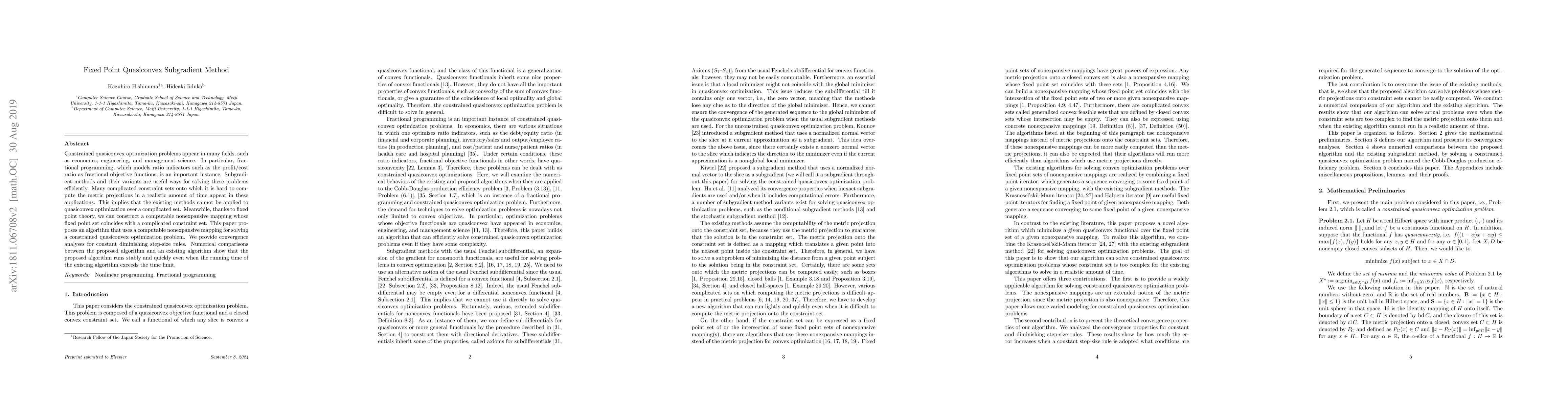 This paper introduces a new quasiconvex subgradient method using a computable nonexpansive mapping to solve constrained optimization problems, particularly fractional programming. The proposed algorithm demonstrates stable and faster convergence compared to existing methods, especially for complex constraint sets.