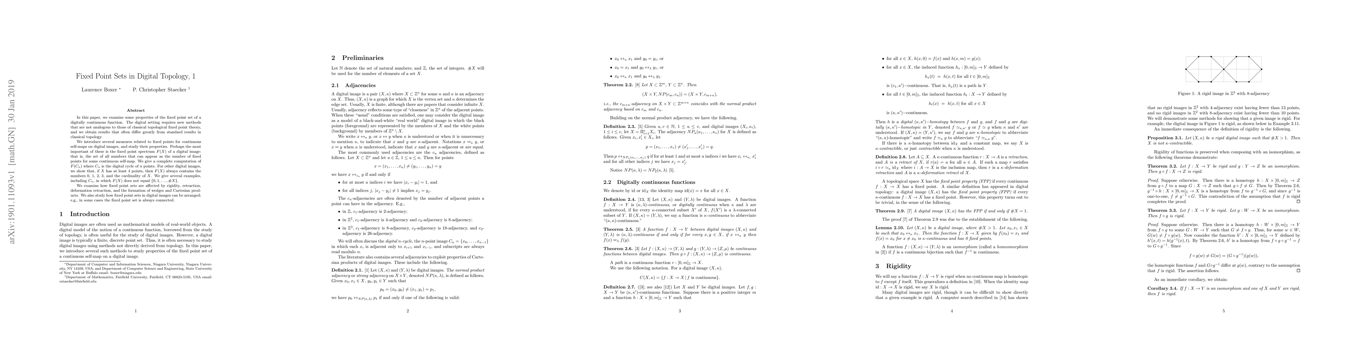 This paper explores properties of fixed point sets in digital topology, introducing new measures for analyzing fixed points on continuous self-maps of digital images, with key findings including a complete computation of the fixed point spectrum for digital cycles.