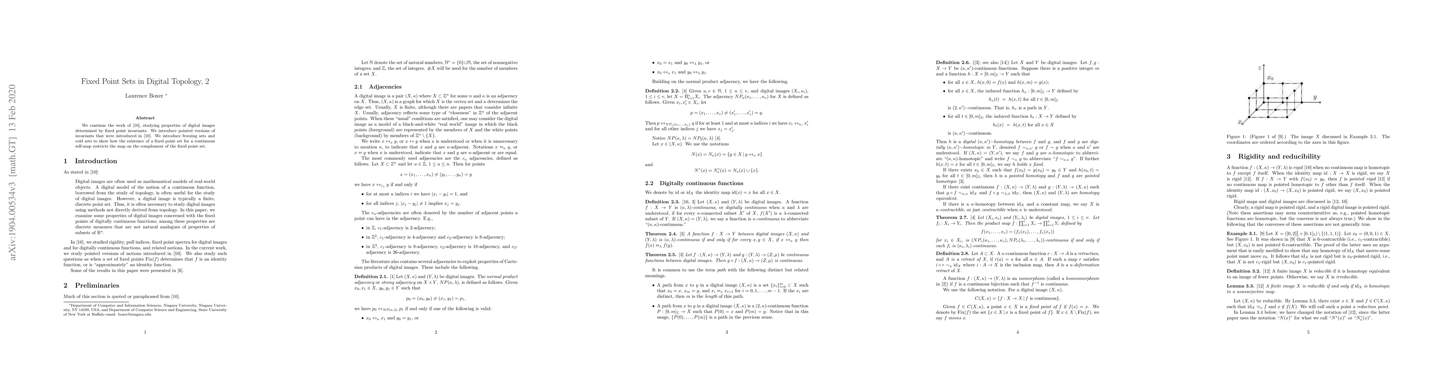 Researchers study properties of digital images determined by fixed point invariants, introducing new concepts like freezing sets to understand how a fixed point restricts a continuous self-map on its complement.