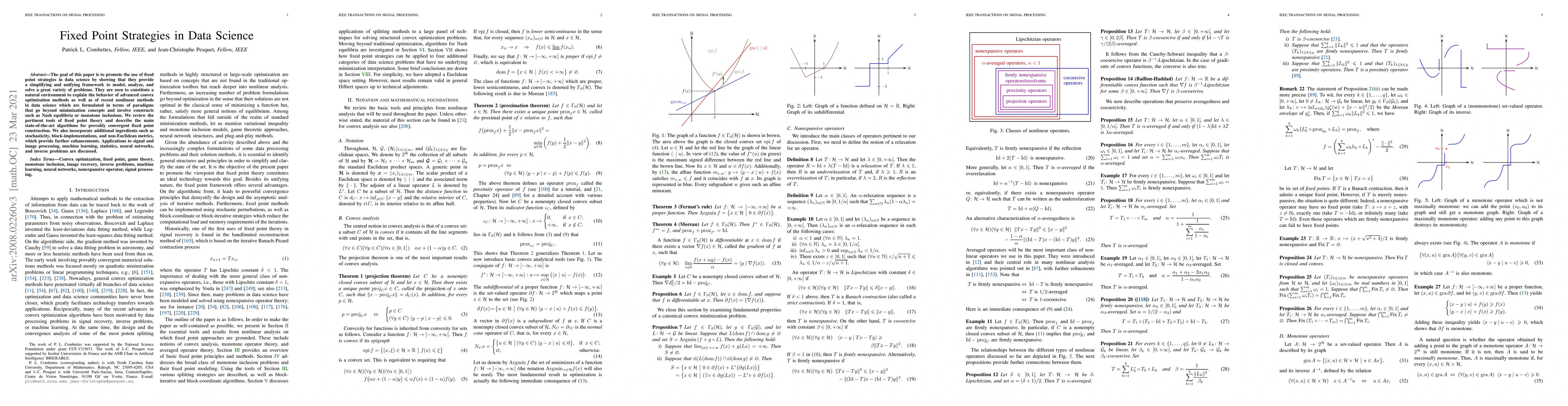 The goal of this paper is to promote the use of fixed point strategies in data science by showing that they provide a simplifying and unifying framework to model, analyze, and solve a great variety of problems. They are seen to constitute a natural environment to explain the behavior of advanced convex optimization methods as well as of recent nonlinear methods in data science which are formulated in terms of paradigms that go beyond minimization concepts and involve constructs such as Nash equilibria or monotone inclusions. We review the pertinent tools of fixed point theory and describe the main state-of-the-art algorithms for provably convergent fixed point construction. We also incorporate additional ingredients such as stochasticity, block-implementations, and non-Euclidean metrics, which provide further enhancements. Applications to signal and image processing, machine learning, statistics, neural networks, and inverse problems are discussed.