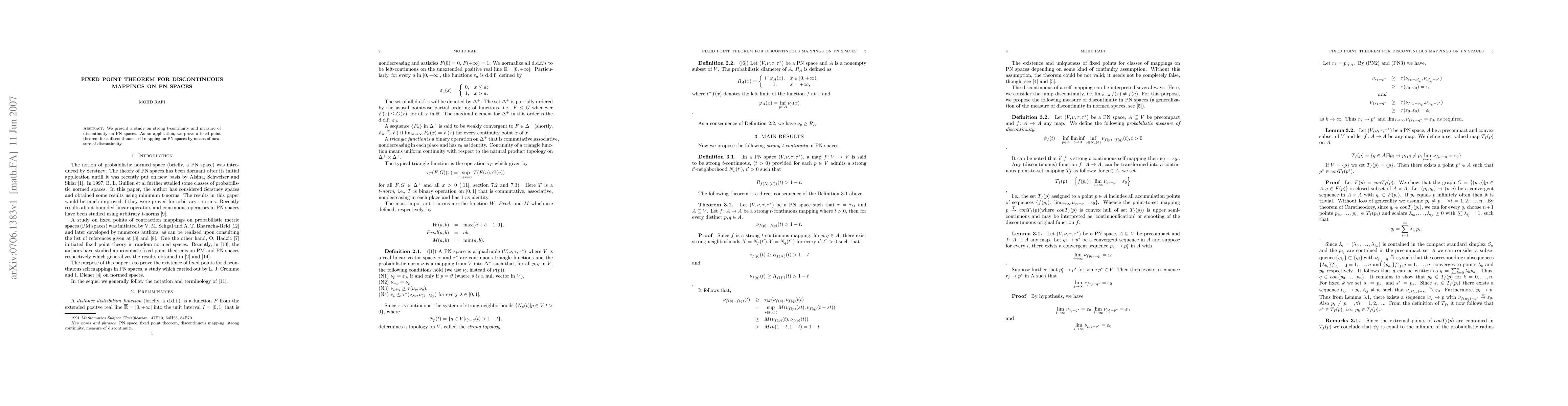This paper investigates strong t-continuity and measures of discontinuity on PN spaces, and applies this analysis to prove a fixed point theorem for self-mappings on these spaces using a measure of discontinuity.