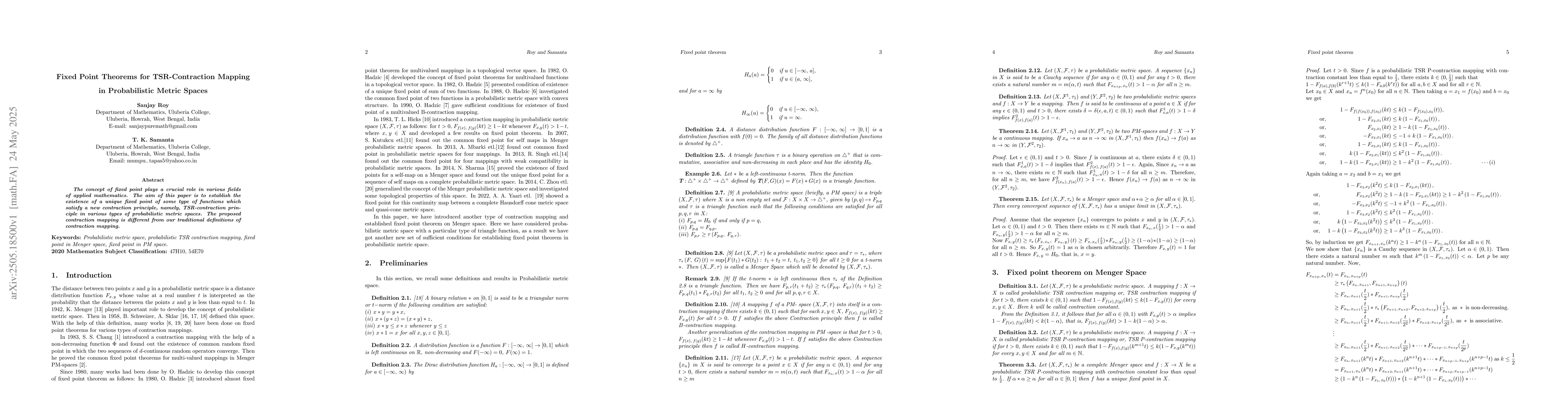The paper presents a new contraction principle (TSR-contraction) and proves the existence and uniqueness of fixed points for such functions in probabilistic metric spaces.
