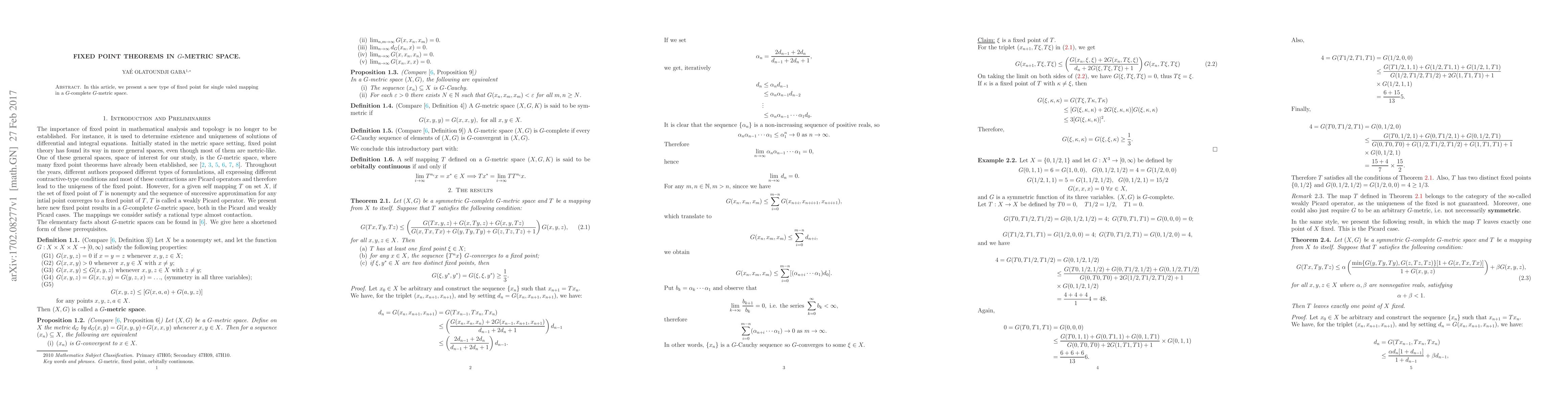 Summary: This paper introduces a novel fixed point theorem for single-valued mappings in a $G$-complete $G$-metric space, expanding the framework for fixed point results beyond traditional metric spaces. The findings provide new insights into the behavior of mappings in generalized metric settings.