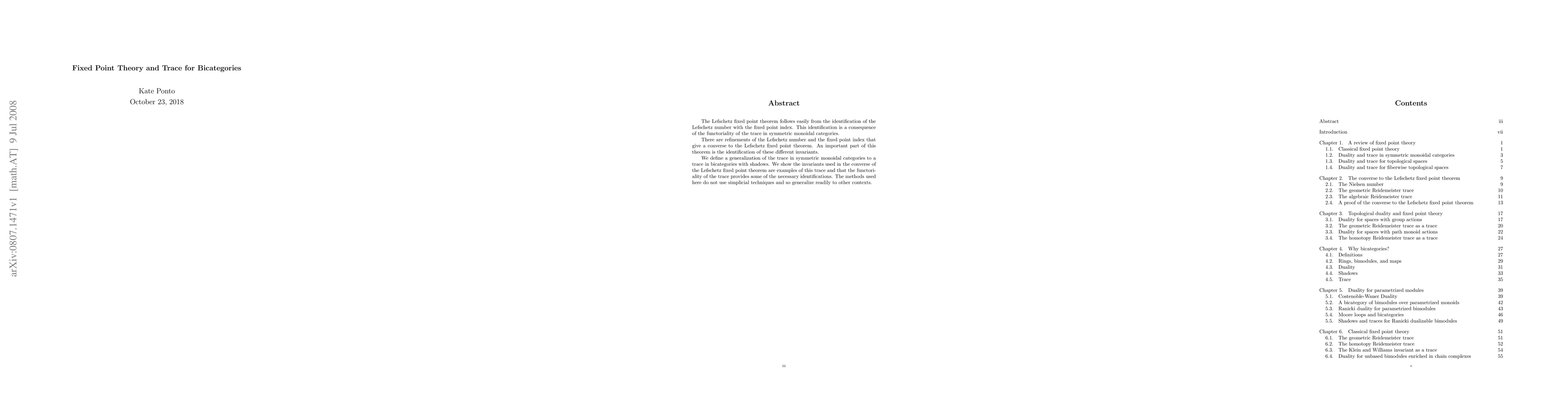 The Lefschetz fixed point theorem follows easily from the identification of the Lefschetz number with the fixed point index. This identification is a consequence of the functoriality of the trace in symmetric monoidal categories. There are refinements of the Lefschetz number and the fixed point index that give a converse to the Lefschetz fixed point theorem. An important part of this theorem is the identification of these different invariants. We define a generalization of the trace in symmetric monoidal categories to a trace in bicategories with shadows. We show the invariants used in the converse of the Lefschetz fixed point theorem are examples of this trace and that the functoriality of the trace provides some of the necessary identifications. The methods used here do not use simplicial techniques and so generalize readily to other contexts.