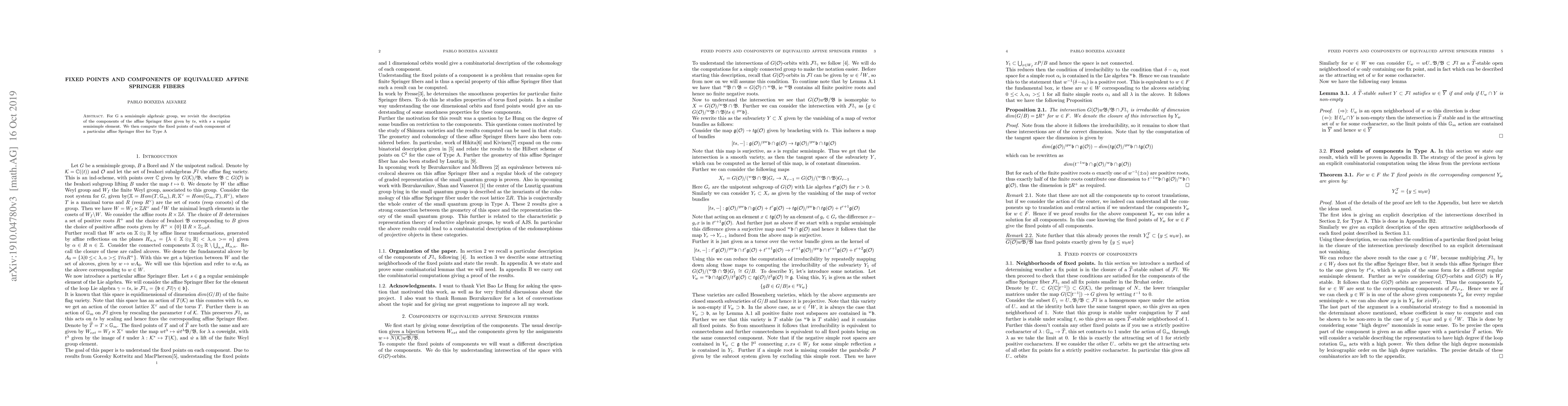 For G a semisimple algebraic group, we revisit the description of the components of the affne Springer fiber given by ts, with s a regular semisimple element. We then compute the fixed points of each component of a particular affne Springer fiber for Type A