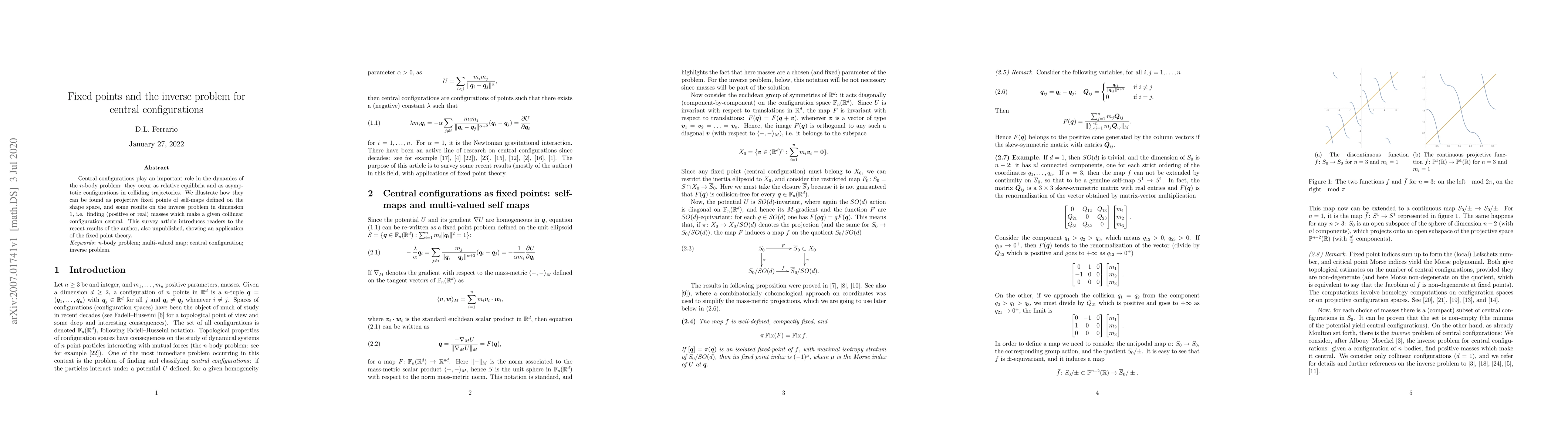 This paper explores central configurations in the $n$-body problem, presenting them as projective fixed points of self-maps. It discusses the inverse problem of determining masses that render a given collinear configuration central, showcasing recent results including some unpublished findings.