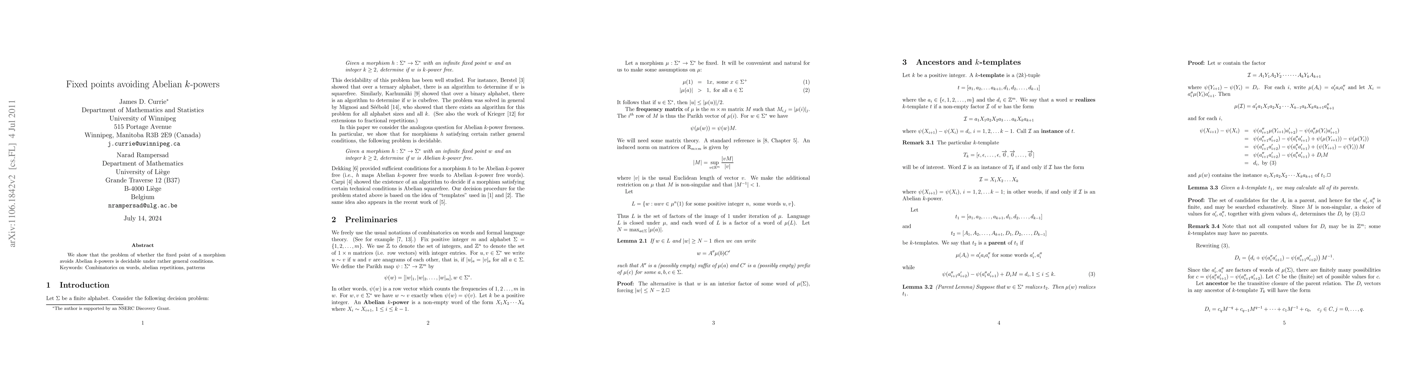 This research contributes to the theoretical understanding of avoiding Abelian k-powers in fixed points of morphisms, which has implications for formal language theory, automata, and coding theory.