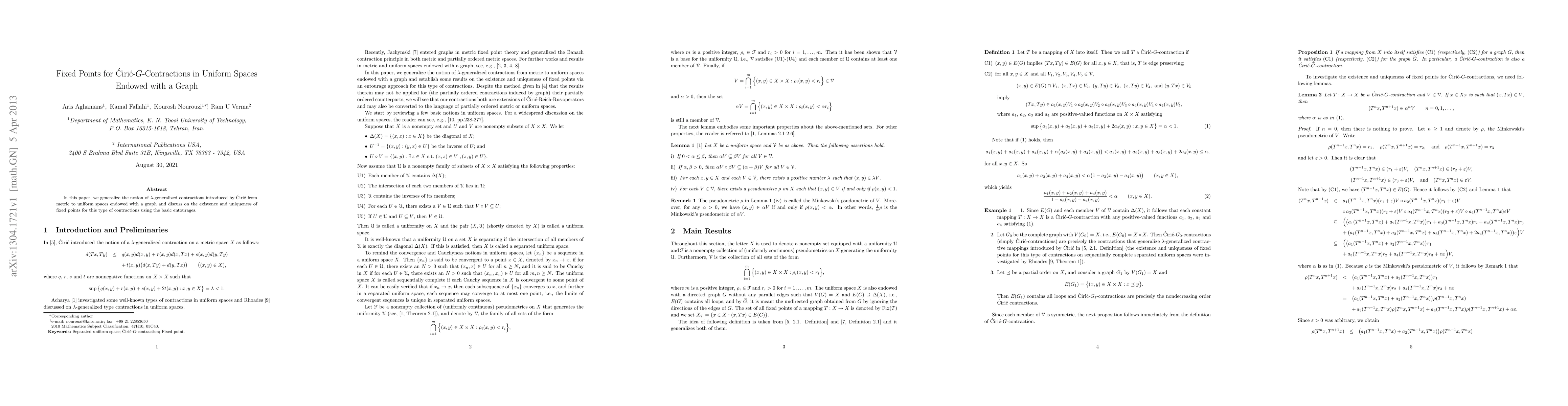 This paper generalizes Ciric's $\lambda$-generalized contractions from metric spaces to uniform spaces with a graph, and explores the existence and uniqueness of fixed points using basic entourages.