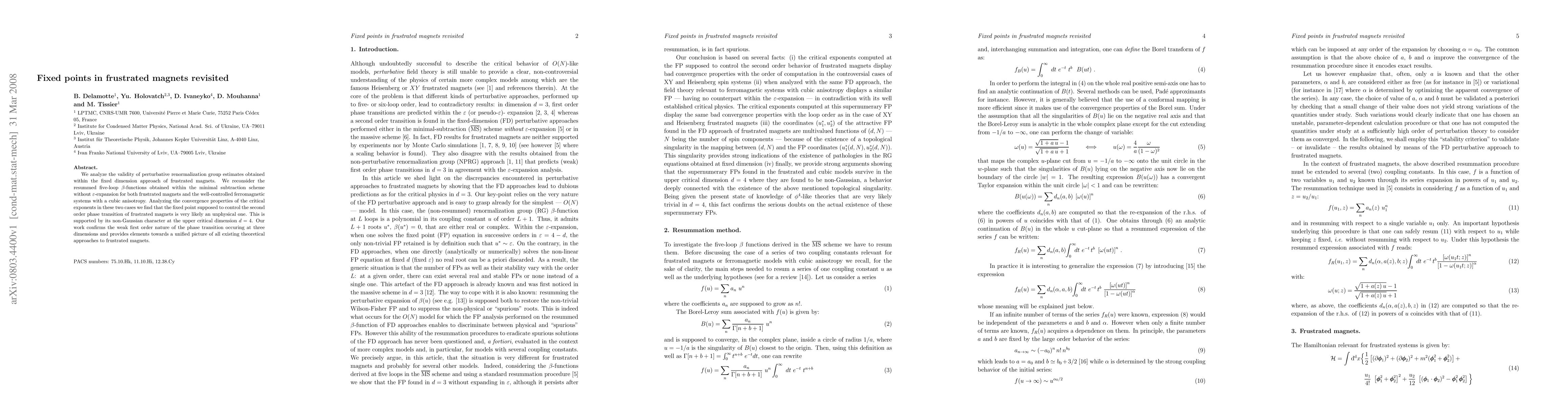 The paper presents a critical analysis of fixed dimension approach in renormalization group theory for frustrated magnets, highlighting the limitations of perturbative methods at higher dimensions.