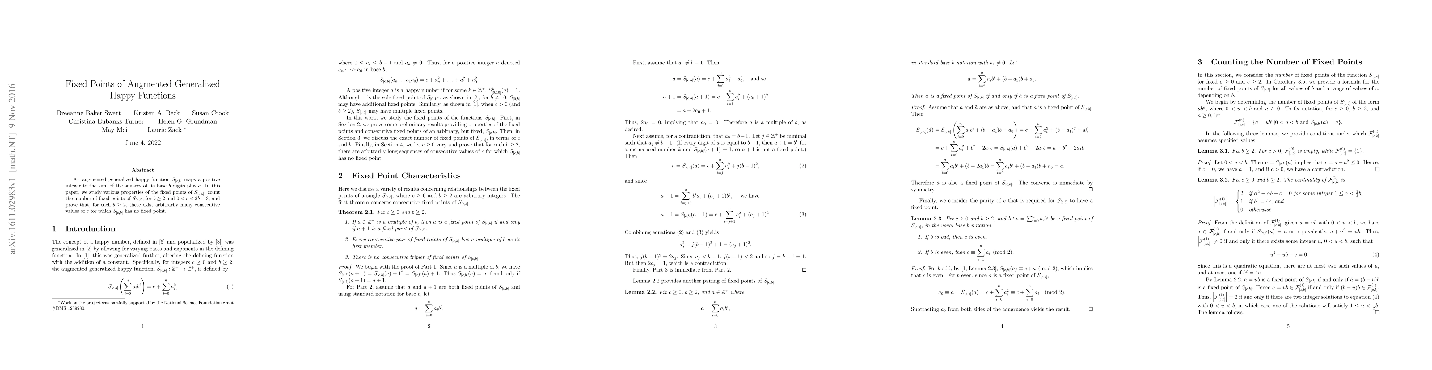 An augmented generalized happy function $S_{[c,b]}$ maps a positive integer