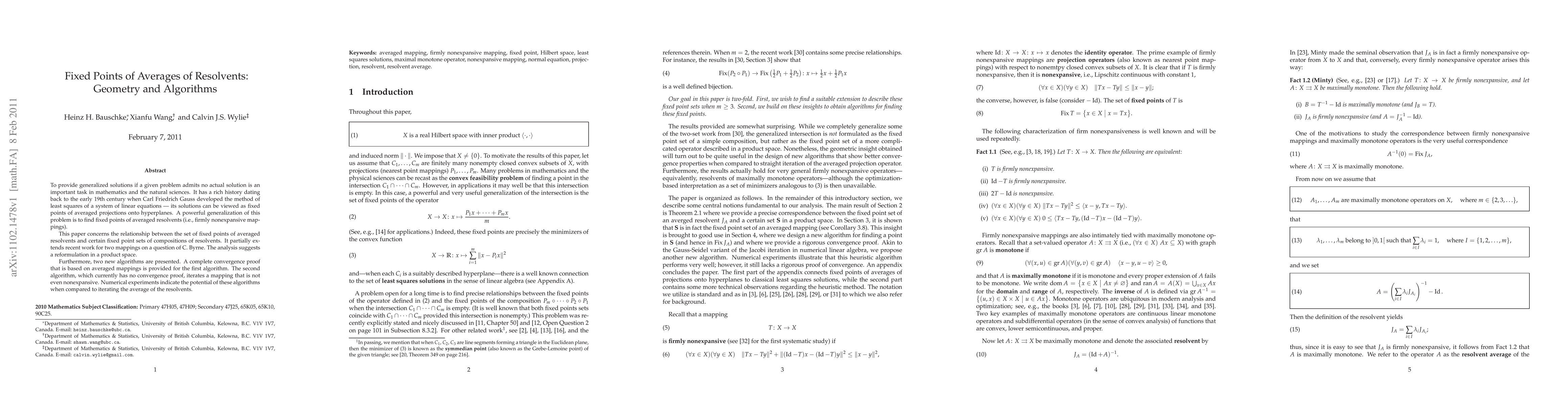 This paper explores the geometry and algorithms related to fixed points of averaged resolvents, extending previous work on compositions of resolvents. It introduces two new algorithms, with a complete convergence proof for the first and numerical experiments suggesting potential for the second.