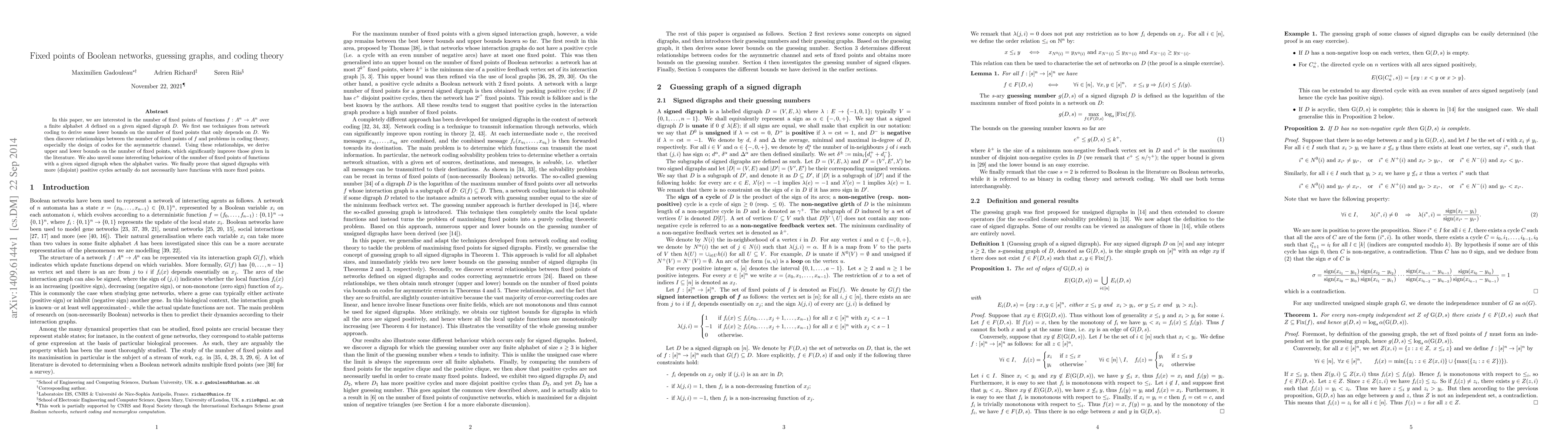 In this paper, we are interested in the number of fixed points of functions $f:A^n\to A^n$ over a finite alphabet $A$ defined on a given signed digraph $D$. We first use techniques from network coding to derive some lower bounds on the number of fixed points that only depends on $D$. We then discover relationships between the number of fixed points of $f$ and problems in coding theory, especially the design of codes for the asymmetric channel. Using these relationships, we derive upper and lower bounds on the number of fixed points, which significantly improve those given in the literature. We also unveil some interesting behaviour of the number of fixed points of functions with a given signed digraph when the alphabet varies. We finally prove that signed digraphs with more (disjoint) positive cycles actually do not necessarily have functions with more fixed points.