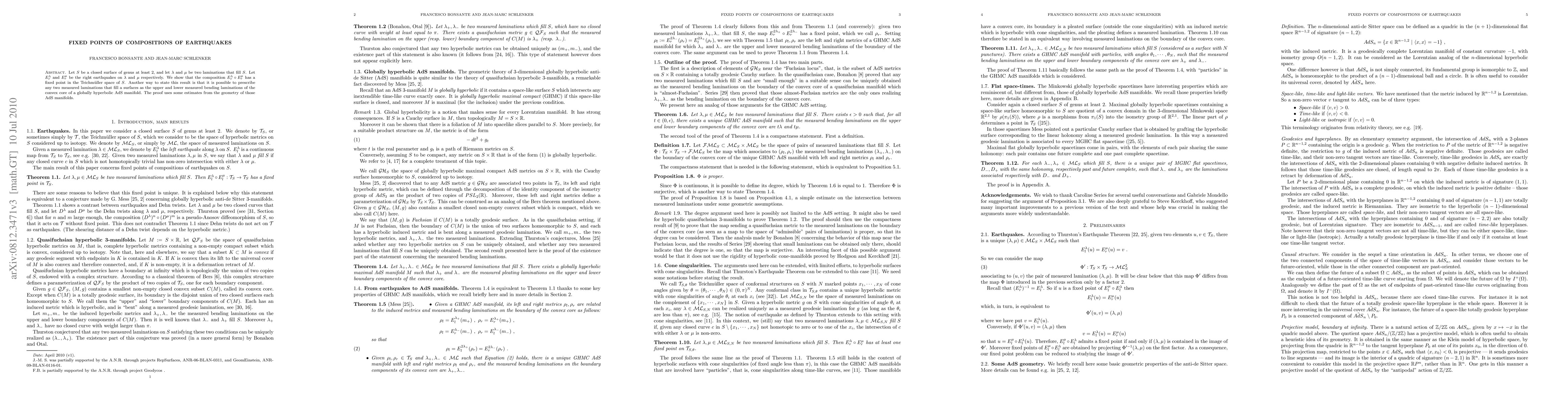 Let S be a closed surface of genus at least 2, and consider two measured geodesic laminations that fill S. Right earthquakes along these laminations are diffeomorphisms of the Teichm\"uller space of S. We prove that the composition of these earthquakes has a fixed point in the Teichm\"uller space. Another way to state this result is that it is possible to prescribe any two measured laminations that fill a surface as the upper and lower measured bending laminations of the convex core of a globally hyperbolic AdS manifold. The proof uses some estimates from the geometry of those AdS manifolds.