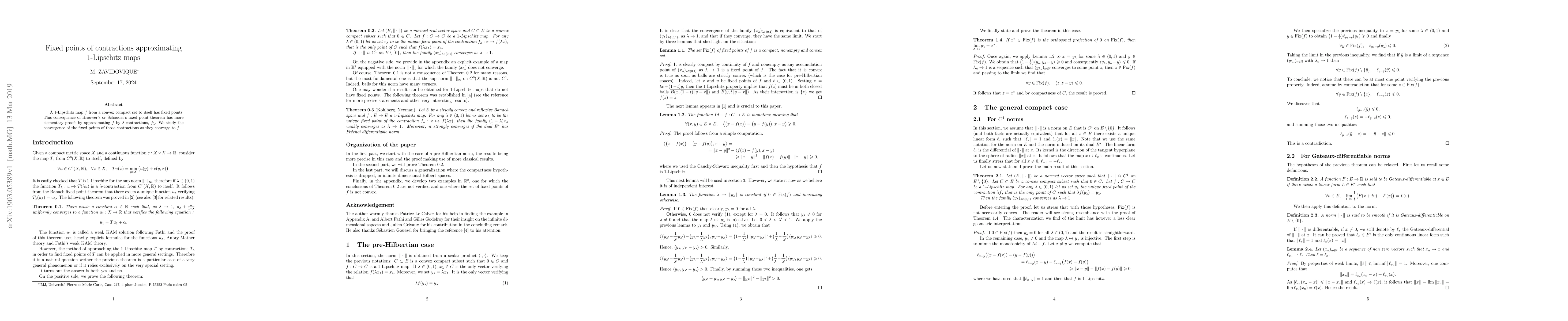 A $1$-Lipschitz map $f$ from a convex compact set to itself has fixed points. This consequence of Brouwer's or Schauder's fixed point theorem has more elementary proofs by approximating $f$ by $\lambda$-contractions, $f_\lambda$. We study the convergence of the fixed points of those contractions as they converge to $f$.