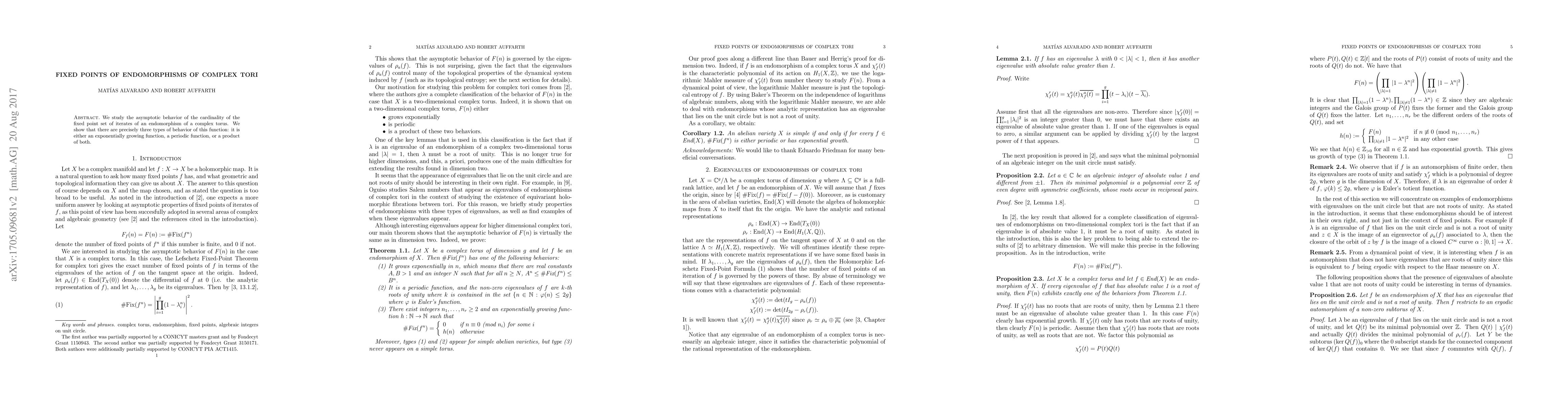 This paper investigates the asymptotic behavior of the fixed points under iterates of an endomorphism on a complex torus, revealing three possible outcomes: exponential growth, periodic behavior, or a combination of both.