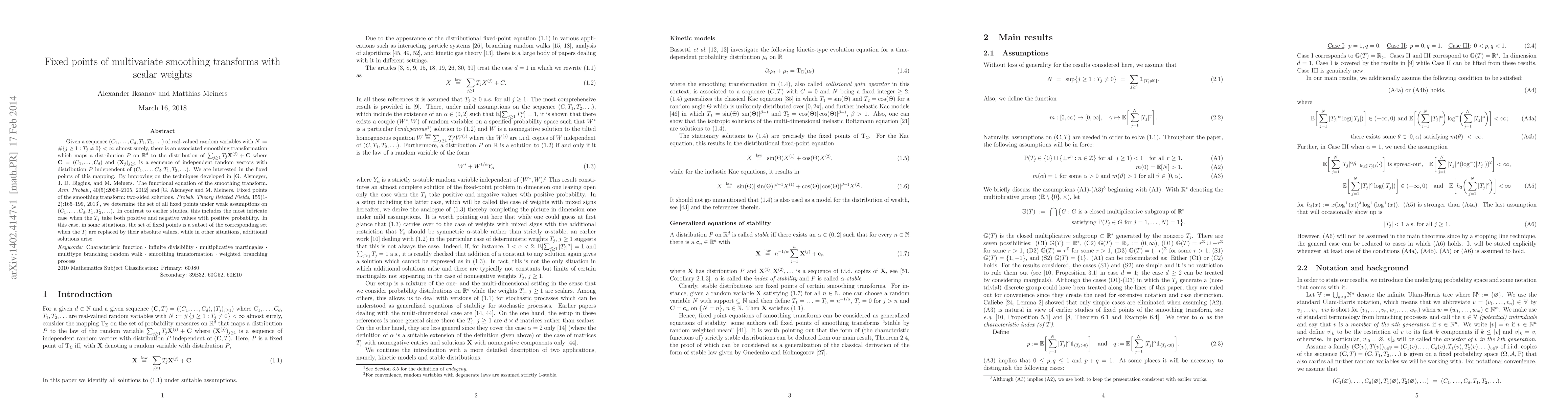 Given a sequence $(C_1,\ldots,C_d,T_1,T_2,\ldots)$ of real-valued random variables with $N := \#\{j \geq 1: T_j \not = 0\} < \infty$ almost surely, there is an associated smoothing transformation which maps a distribution $P$ on $\mathbb{R}^d$ to the distribution of $\sum_{j \geq 1} T_j \mathbf{X}^{(j)} + \mathbf{C}$ where $\mathbf{C} = (C_1,\ldots,C_d)$ and $(\mathbf{X}^{(j)})_{j \geq 1}$ is a sequence of independent random vectors with distribution $P$ independent of $(C_1,\ldots,C_d,T_1,T_2,\ldots)$. We are interested in the fixed points of this mapping. By improving on the techniques developed in [G. Alsmeyer, J.D. Biggins, and M. Meiners. The functional equation of the smoothing transform {\em Ann. Probab.}, 40(5):2069--2105, 2012] and [G. Alsmeyer and M. Meiners. Fixed points of the smoothing transform: two-sided solutions. {\em Probab. Theory Related Fields}, 155(1-2):165--199, 2013], we determine the set of all fixed points under weak assumptions on $(C_1,\ldots,C_d,T_1,T_2,\ldots)$. In contrast to earlier studies, this includes the most intricate case when the $T_j$ take both positive and negative values with positive probability. In this case, in some situations, the set of fixed points is a subset of the corresponding set when the $T_j$ are replaced by their absolute values, while in other situations, additional solutions arise.