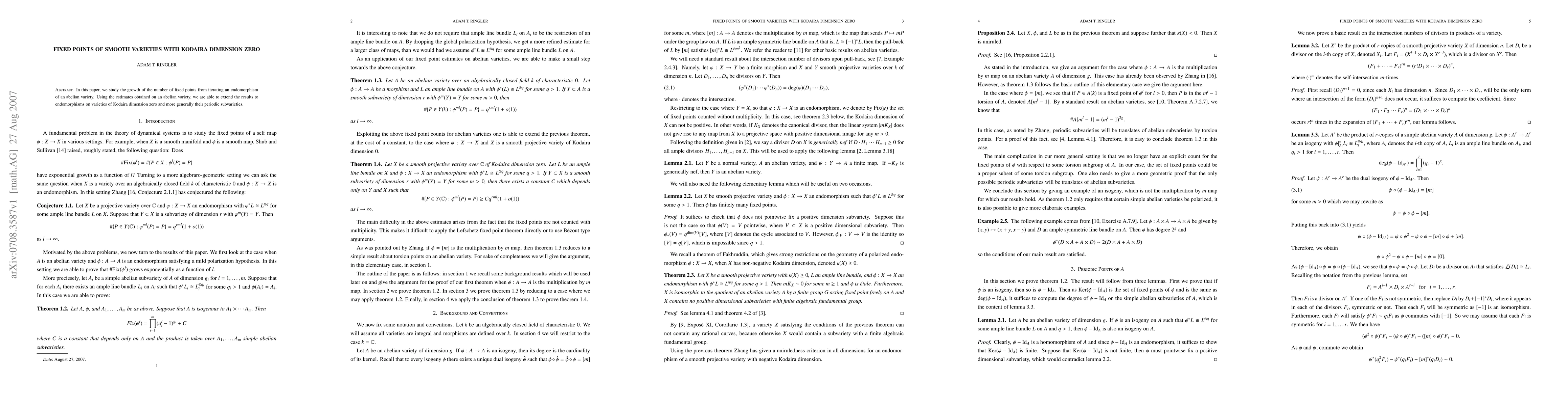 This paper investigates the growth of fixed points from iterating endomorphisms on abelian varieties and extends these findings to varieties with Kodaira dimension zero, along with their periodic subvarieties. The results provide insights into the behavior of such endomorphisms on these algebraic structures.