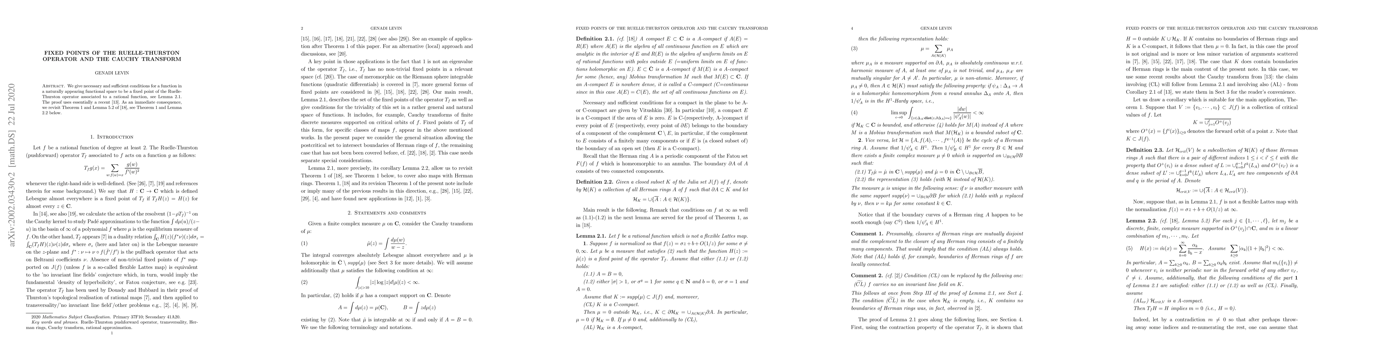 We give necessary and sufficient conditions for a function in a naturally appearing functional space to be a fixed point of the Ruelle-Thurston operator associated to a rational function, see Lemma 2.1. The proof uses essentially a recent [13]. As an immediate consequence, we revisit Theorem 1 and Lemma 5.2 of [11], see Theorem 1 and Lemma 2.2 below.