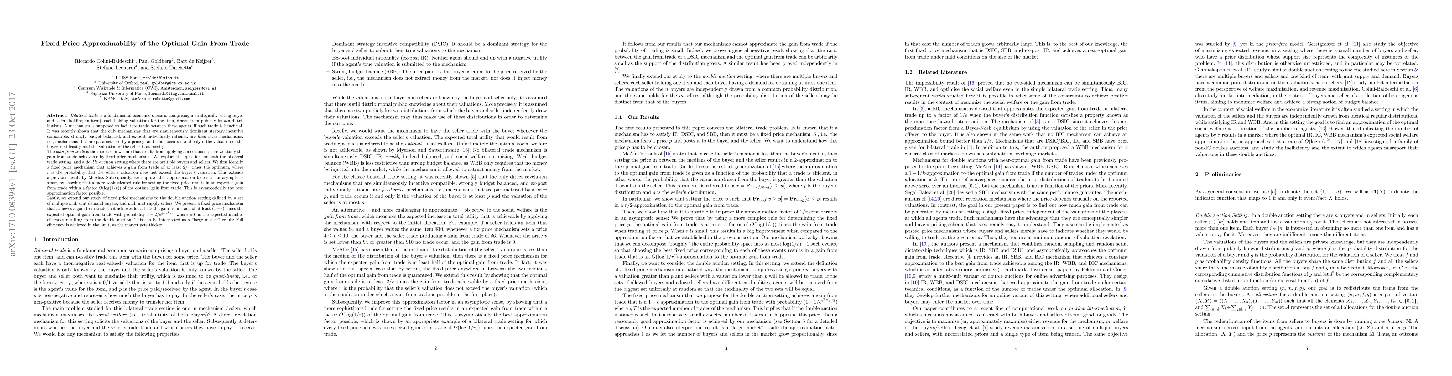 This paper investigates the fixed price mechanisms for bilateral trade and double auctions, demonstrating that such mechanisms can achieve a trade gain approximating the optimal welfare within a factor of O(log(1/r)) asymptotically. It extends previous results and presents mechanisms for both settings that achieve near-optimal gains with high probability.