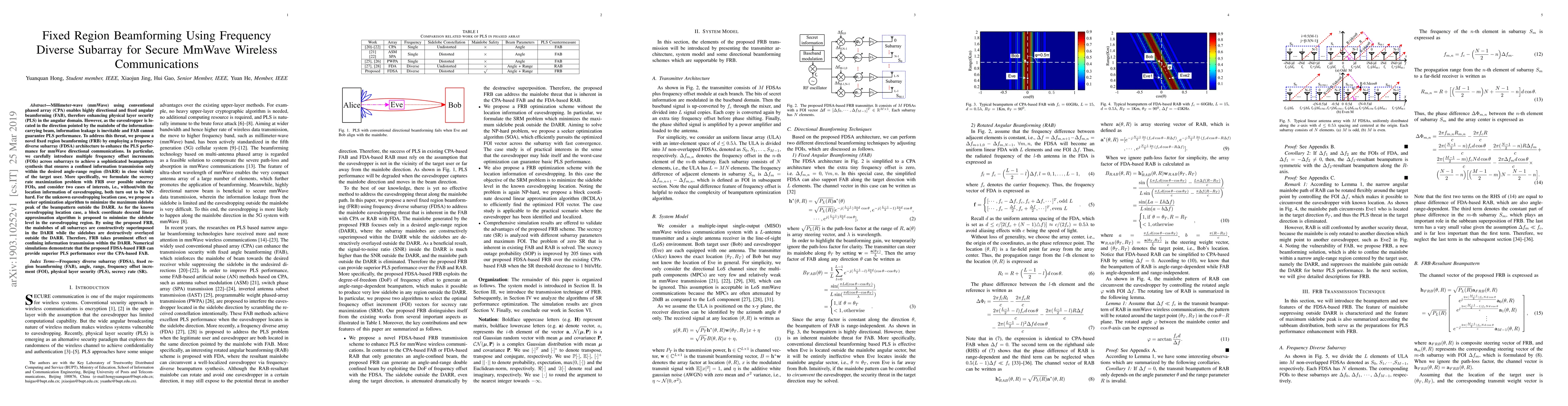 This paper proposes a fixed region beamforming (FRB) using a frequency diverse subarray (FDSA) to enhance physical layer security in mmWave wireless communications. The FRB method confines information transmission to a desired angle-range region, minimizing sidelobes outside this region, thereby improving security over conventional phased array beamforming.