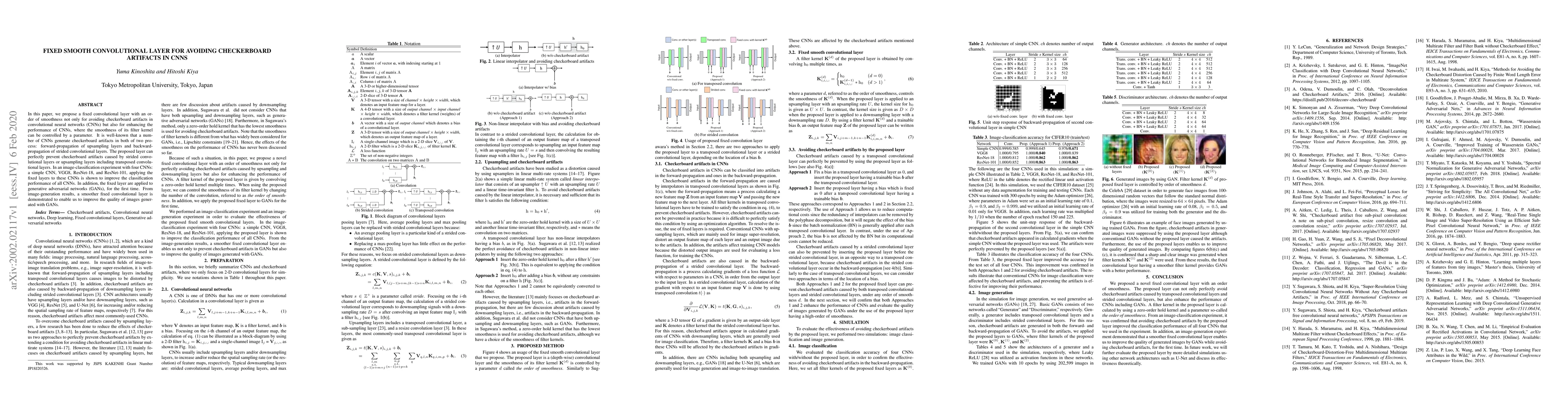 This paper proposes a fixed smooth convolutional layer to prevent checkerboard artifacts in CNNs and enhance their performance. The layer's filter kernel smoothness is adjustable, effectively eliminating artifacts from upsampling and strided convolutional layers, and improving classification and image generation results in tested CNNs and GANs.