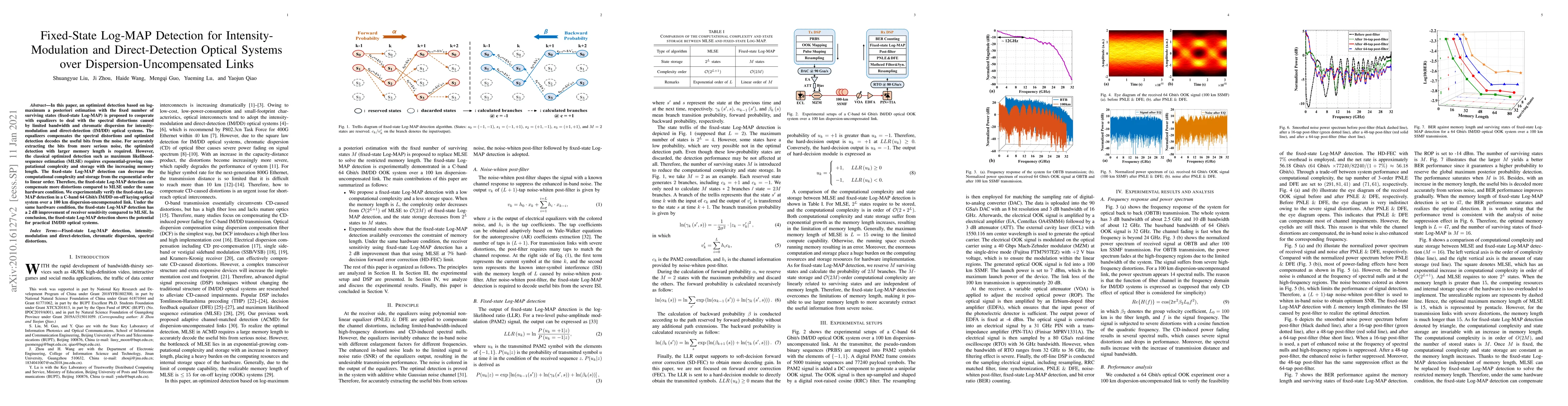 This paper proposes fixed-state Log-MAP detection to optimize signal recovery in intensity-modulation and direct-detection optical systems over dispersion-uncompensated links, achieving a 2 dB improvement in receiver sensitivity compared to maximum likelihood-sequence estimation (MLSE) while reducing computational complexity.