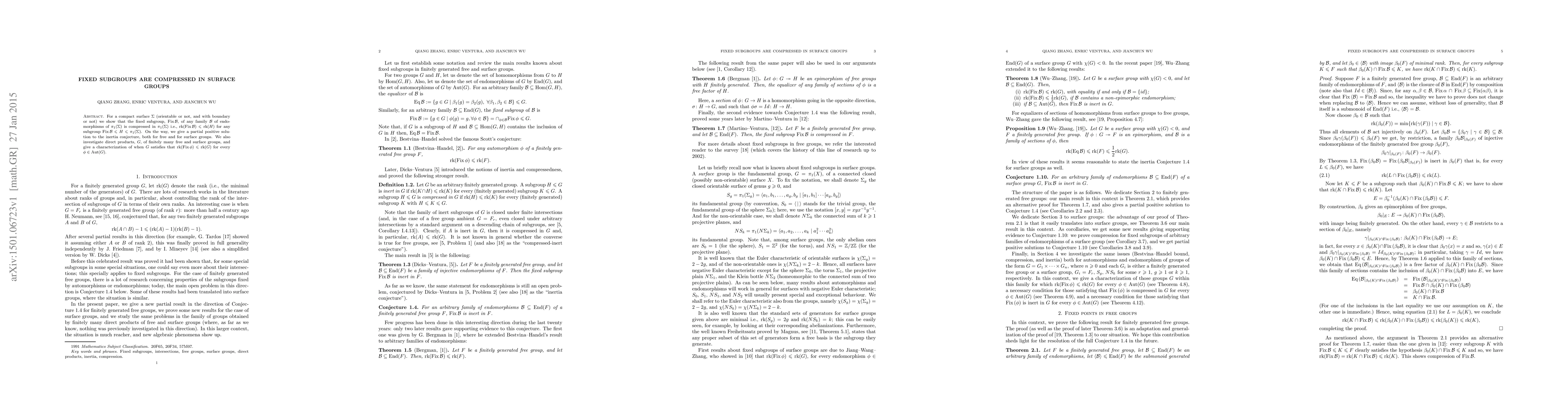 For a compact surface $\Sigma$ (orientable or not, and with boundary or not) we show that the fixed subgroup, $\operatorname{Fix} B$, of any family $B$ of endomorphisms of $\pi_1(\Sigma)$ is compressed in $\pi_1(\Sigma)$ i.e., $\operatorname{rk}((\operatorname{Fix} B)\cap H)\leq \operatorname{rk}(H)$ for any subgroup $\operatorname{Fix} B \leq H \leq \pi_1(\Sigma)$. On the way, we give a partial positive solution to the inertia conjecture, both for free and for surface groups. We also investigate direct products, $G$, of finitely many free and surface groups, and give a characterization of when $G$ satisfies that $\operatorname{rk}(\operatorname{Fix} \phi) \leq \operatorname{rk}(G)$ for every $\phi \in Aut(G)$.
