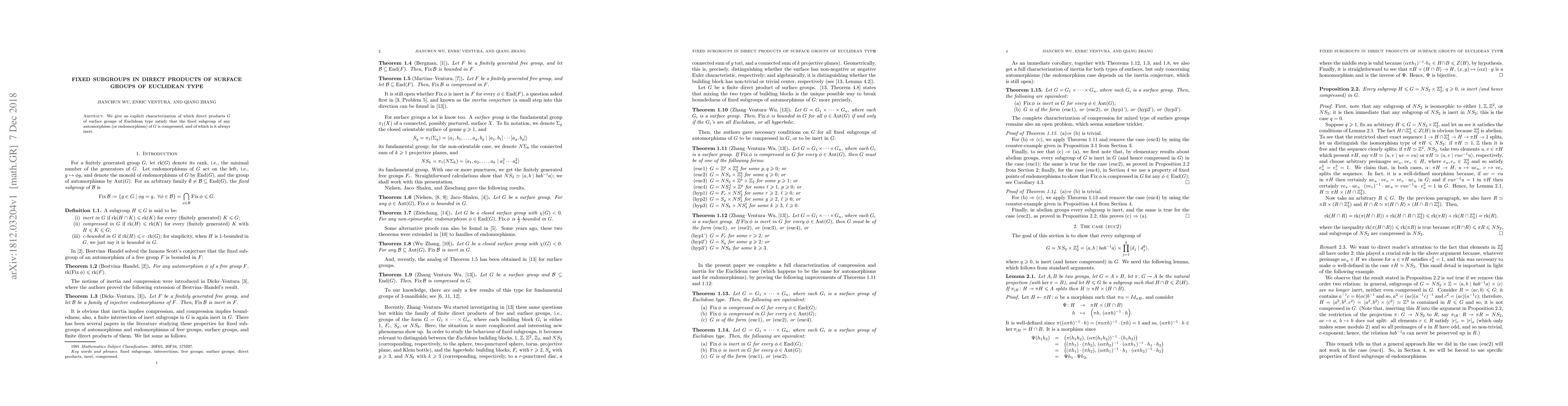 We give an explicit characterization of which direct products $G$ of surface groups of Euclidean type satisfy that the fixed subgroup of any automorphism (or endomorphism) of $G$ is compressed, and of which is it always inert.