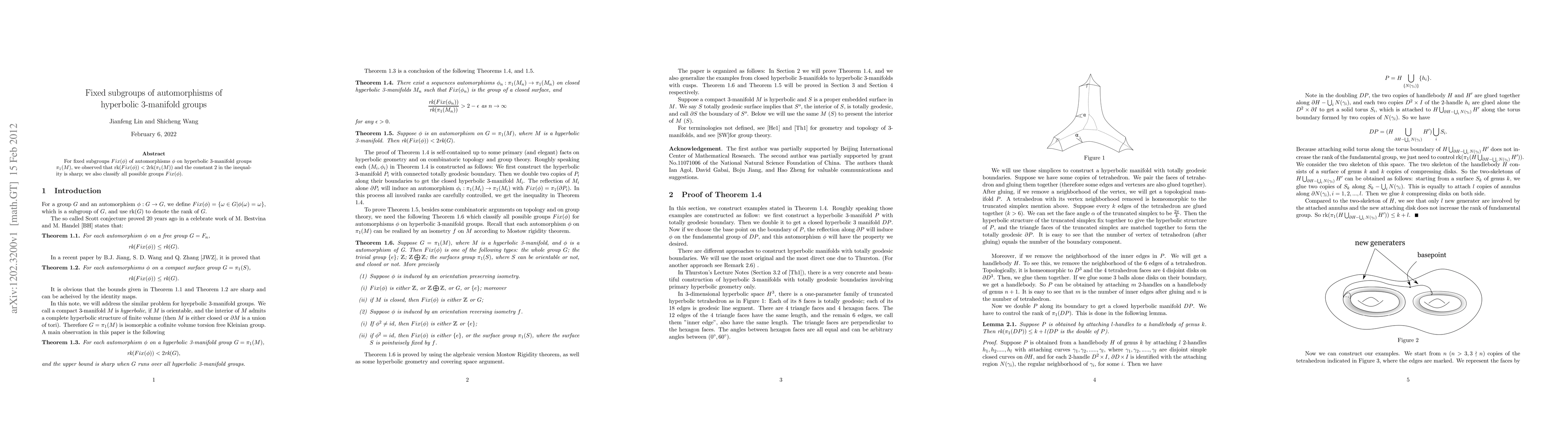 This paper investigates fixed subgroups of automorphisms in hyperbolic 3-manifold groups, showing that their rank is strictly less than twice the rank of the original group, with the constant 2 being the sharpest bound. It also classifies all possible such fixed subgroups.