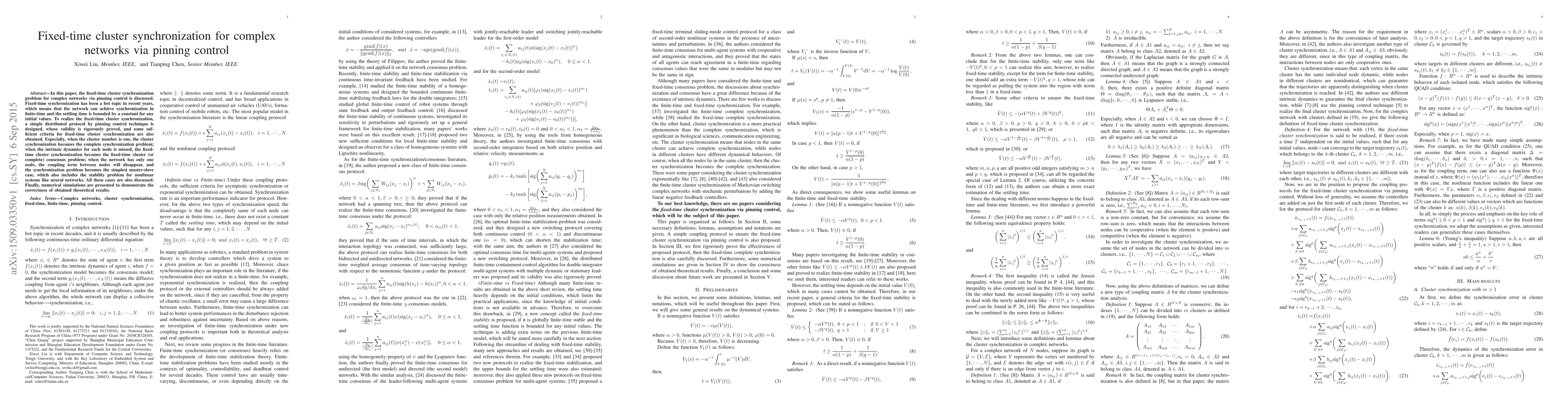 This paper proposes a pinning control method for achieving fixed-time cluster synchronization in complex networks, ensuring synchronization in a finite, constant time regardless of initial conditions. The study also addresses variations including complete synchronization, consensus, and stability in single-node networks.