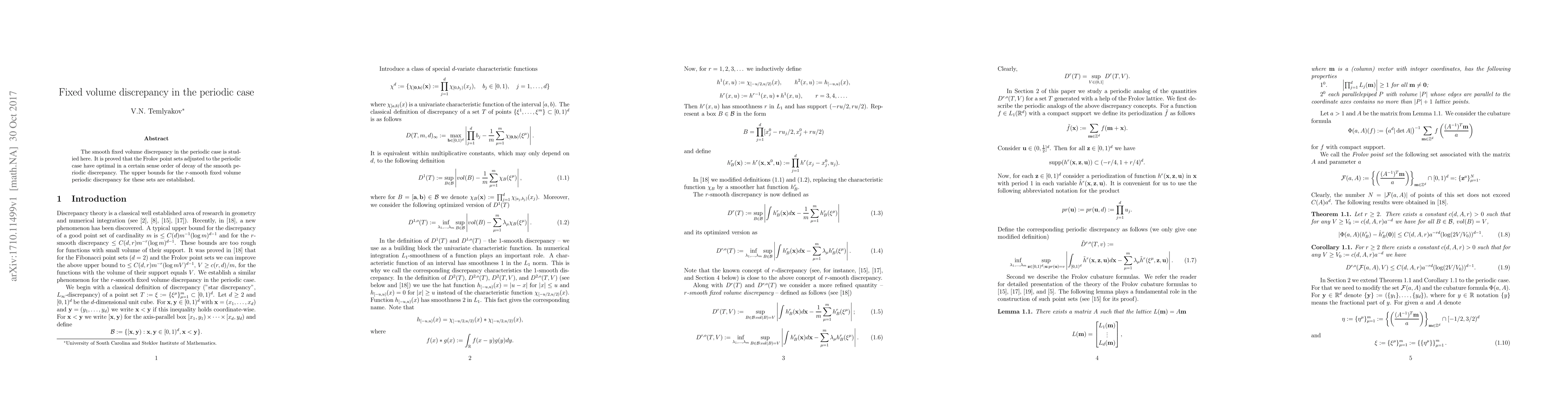 This paper investigates the smooth fixed volume discrepancy in periodic settings, proving that the Frolov point sets exhibit optimal decay rates for the periodic discrepancy. Upper bounds for the $r$-smooth fixed volume periodic discrepancy are established for these sets.