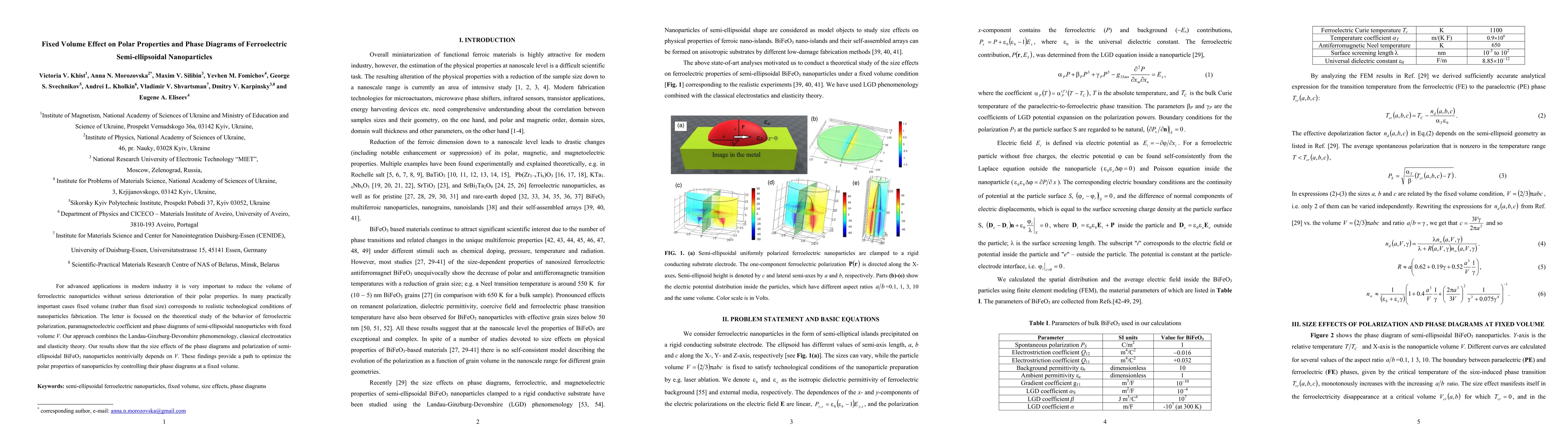 This paper investigates the impact of fixed volume on the polar properties and phase diagrams of ferroelectric semi-ellipsoidal nanoparticles, using BiFeO3 as a model. The study combines Landau-Ginzburg-Devonshire phenomenology with electrostatics and elasticity theory, revealing that nanoparticle size effects on polarization and phase diagrams are nontrivially dependent on volume, offering a pathway to optimize polar properties at a fixed volume.