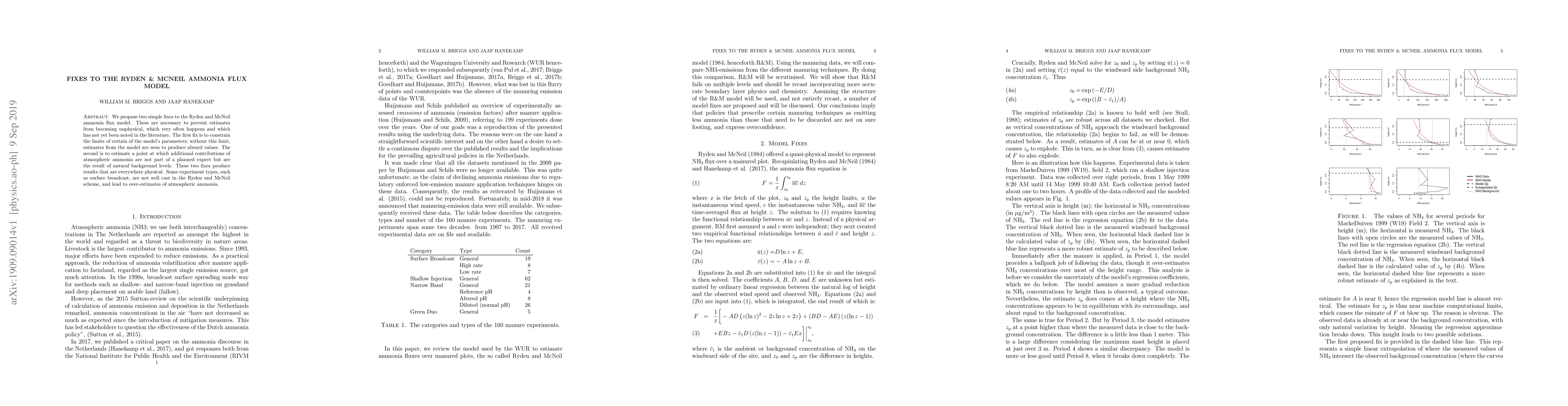We propose two simple fixes to the Ryden and McNeil ammonia flux model. These are necessary to prevent estimates from becoming unphysical, which very often happens and which has not yet been noted in the literature. The first fix is to constrain the limits of certain of the model's parameters; without this limit, estimates from the model are seen to produce absurd values. The second is to estimate a point at which additional contributions of atmospheric ammonia are not part of a planned expert but are the result of natural background levels. These two fixes produce results that are everywhere physical. Some experiment types, such as surface broadcast, are not well cast in the Ryden and McNeil scheme, and lead to over-estimates of atmospheric ammonia.