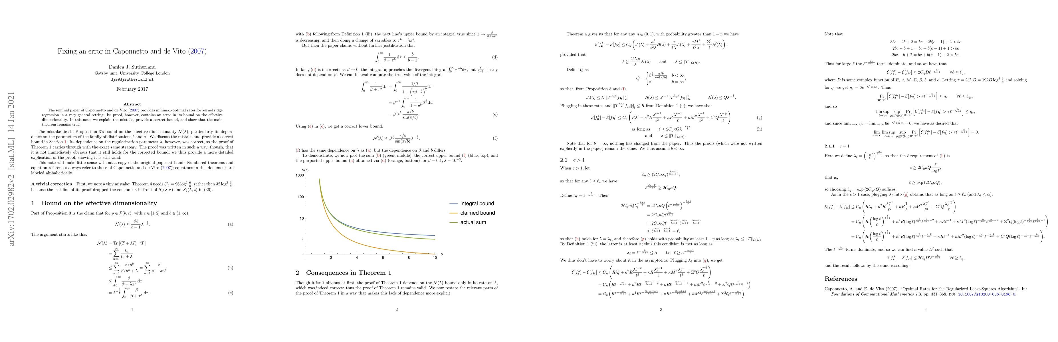 The seminal paper of Caponnetto and de Vito (2007) provides minimax-optimal rates for kernel ridge regression in a very general setting. Its proof, however, contains an error in its bound on the effective dimensionality. In this note, we explain the mistake, provide a correct bound, and show that the main theorem remains true.