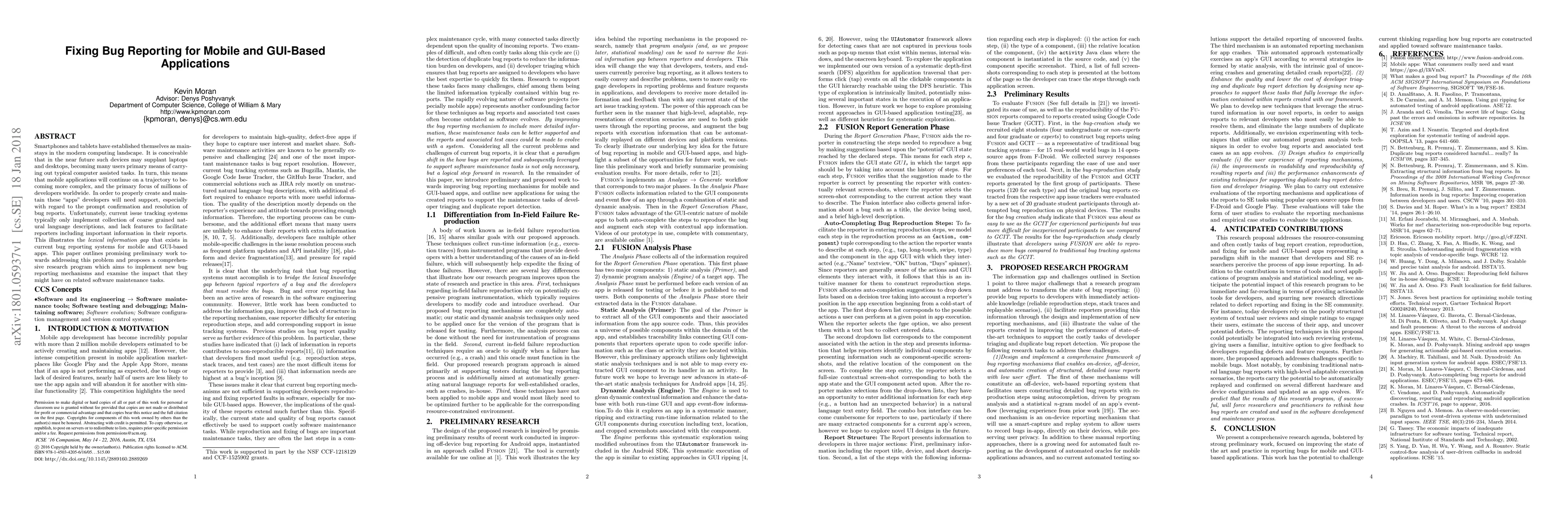Kevin Moran, Denys Poshyvanyk, Alessandro Orso et al.