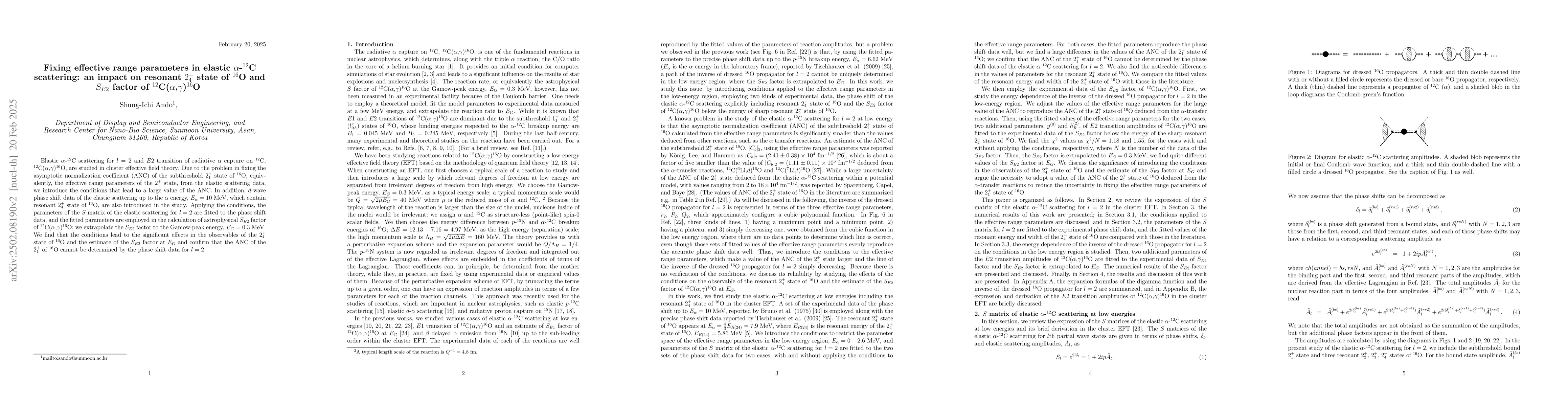 The paper introduces conditions to fix effective range parameters in elastic α-$^{12}$C scattering, impacting resonant $2_4^+$ state of $^{16}$O and the $S_{E2}$ factor calculation.
