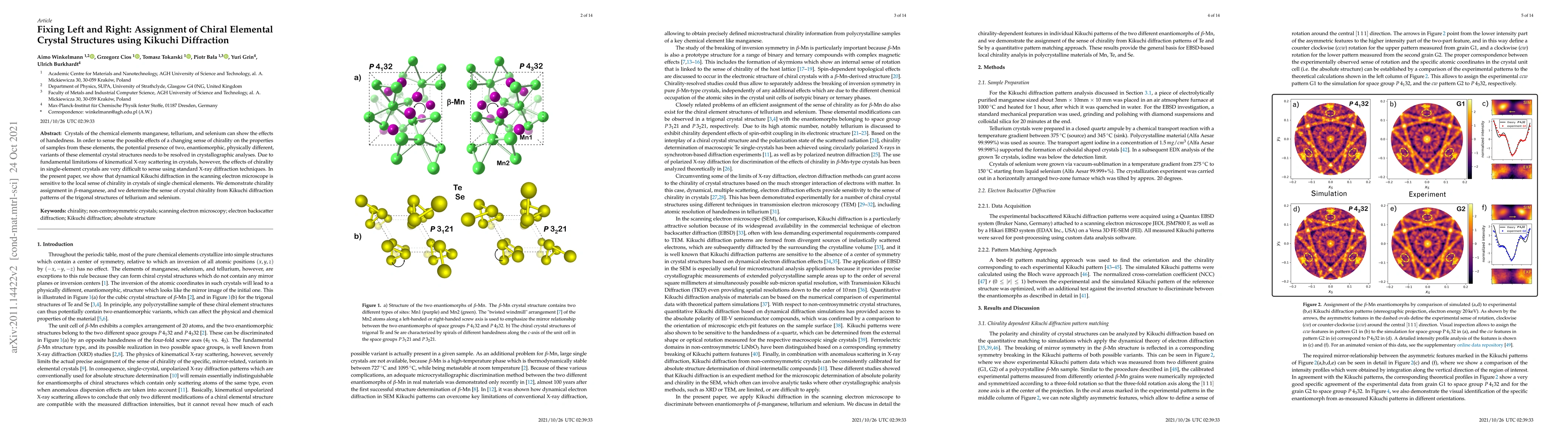 This paper demonstrates that dynamical Kikuchi diffraction in a scanning electron microscope can detect chirality in elemental crystals of manganese, tellurium, and selenium, overcoming the limitations of traditional X-ray diffraction techniques. The method successfully assigns chirality to $\beta$-manganese and identifies the chiral sense in tellurium and selenium crystals.