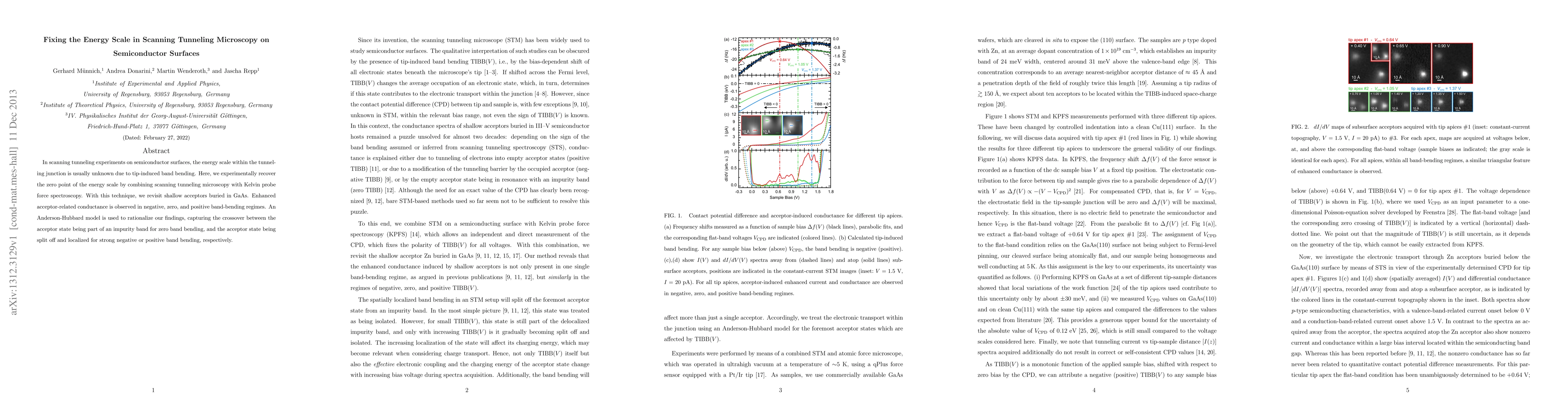 This paper presents a method to determine the energy scale in scanning tunneling microscopy on semiconductor surfaces by integrating it with Kelvin probe force spectroscopy, allowing for the observation of enhanced acceptor-related conductance in GaAs across different band-bending regimes. The findings are explained using an Anderson-Hubbard model, which describes the transition of acceptor states under varying band bending conditions.