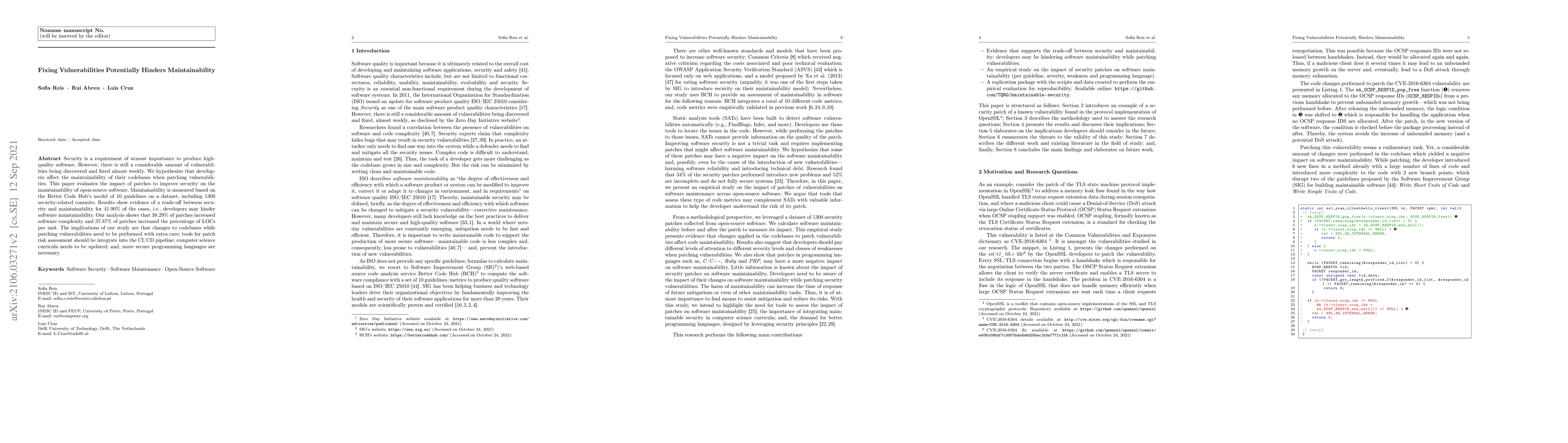 This paper investigates the impact of security patches on software maintainability, finding that 41.90% of patches negatively affect maintainability, increasing complexity and LOCs. It suggests careful patch management, integration of risk assessment tools, and updates to computer science education and programming languages.