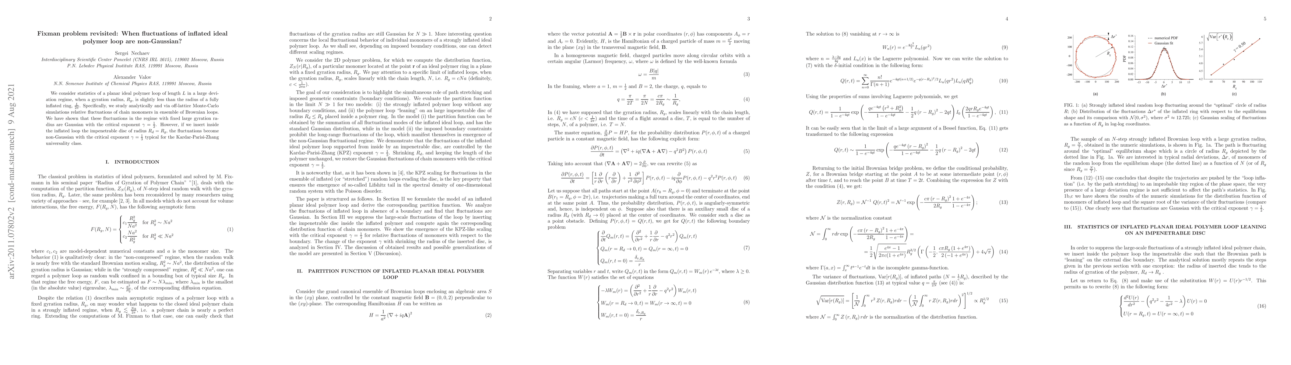 Research investigates fluctuations in an ideal polymer loop with a partially inflated section, finding Gaussian behavior at one radius, but non-Gaussian behavior when an impenetrable disc is added to the inflation.