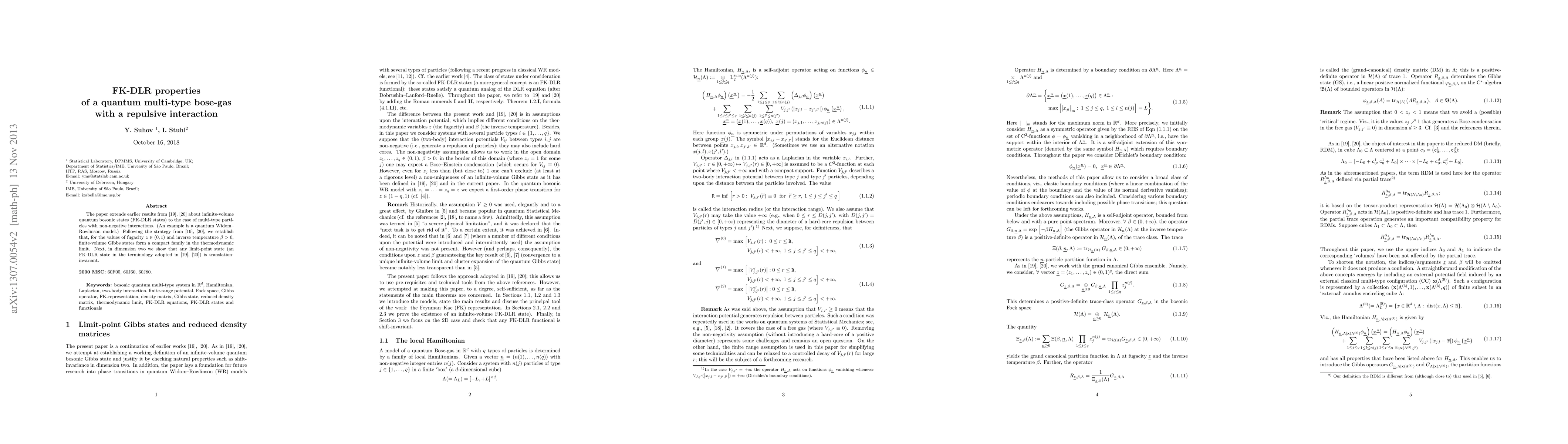 The paper extends earlier results from \cite{SK}, \cite{SKS} about infinite-volume quantum bosonic states (FK-DLR states) to the case of multi-type particles with non-negative interactions. (An example is a quantum Widom--Rowlinson model.) Following the strategy from \cite{SK}, \cite{SKS}, we establish that, for the values of fugacity $z\in (0,1)$ and inverse temperature $\beta >0$, finite-volume Gibbs states form a compact family in the thermodynamic limit. Next, in dimension two we show that any limit-point state (an FK-DLR state in the terminology adopted in \cite{SK}, \cite{SKS}) is translation-invariant.
