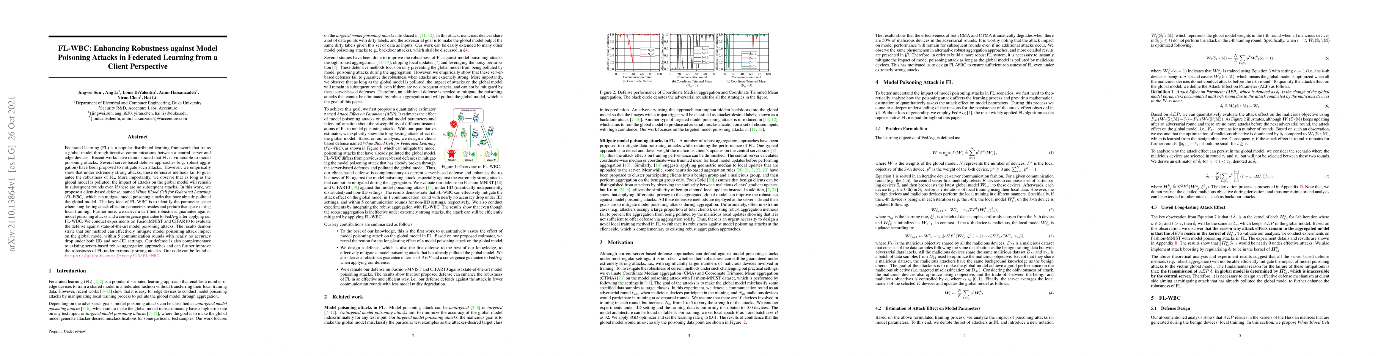 The paper proposes FL-WBC, a client-based defense mechanism to mitigate model poisoning attacks in federated learning, which identifies and perturbs the parameter space affected by attacks during local training, ensuring robustness even under strong attacks. Experiments on FashionMNIST and CIFAR10 show effective mitigation with minimal accuracy loss.