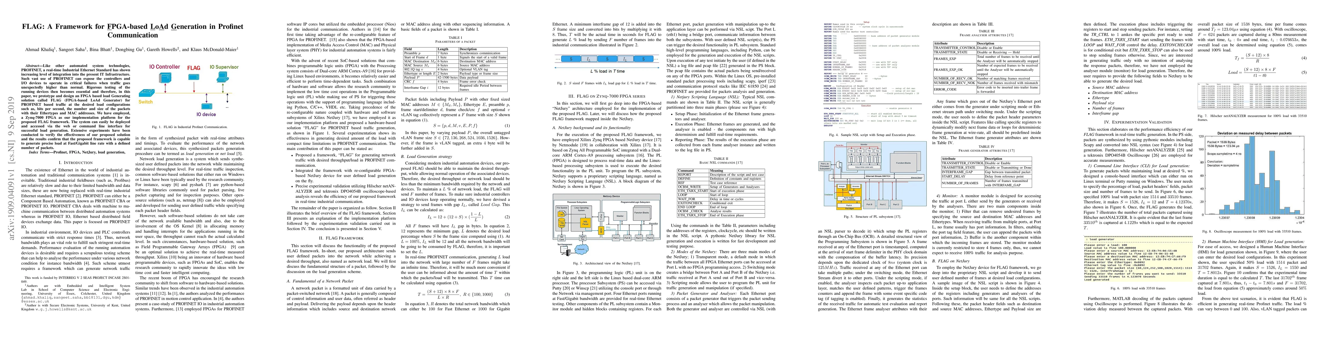 Like other automated system technologies, PROFINET, a real-time Industrial Ethernet Standard has shown increasing level of integration into the present IT Infrastructure. Such vast use of PROFINET can expose the controllers and I/O devices to operate in critical failures when traffic goes unexpectedly higher than normal. Rigorous testing of the running devices then becomes essential and therefore, in this paper, we prototype and design an FPGA based load Generating solution called FLAG (FPGA-based LoAd Generator) for PROFINET based traffic at the desired load configurations such as, bits per second, the number and size of the packets with their Ethertypes and MAC addresses. We have employed, a Zynq-7000 FPGA as our implementation platform for the proposed FLAG framework. The system can easily be deployed and accessed via the web or command line interface for successful load generation. Extensive experiments have been conducted to verify the effectiveness of our proposed solution and the results confirm that the proposed framework is capable to generate precise load at Fast/Gigabit line rate with a defined number of packets.