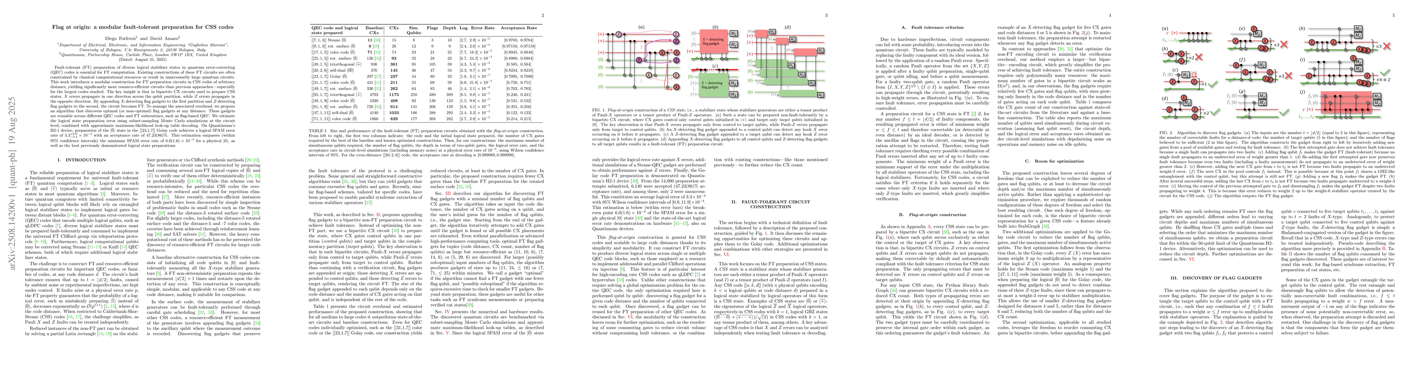 Fault-tolerant (FT) preparation of diverse logical stabilizer states in quantum error-correcting (QEC) codes is essential for FT computation. Existing constructions of these FT circuits are often constrained by classical computational resources or result in unnecessarily large quantum circuits. This work introduces a modular construction for FT preparation circuits in CSS codes of arbitrary distance, yielding significantly more resource-efficient circuits than previous approaches, especially for the largest codes studied. The key insight is that in bipartite CX circuits used to prepare CSS states, $X$ errors propagate in one direction across the qubit partition, while $Z$ errors propagate in the opposite direction. By appending $X$-detecting flag gadgets to the first partition and $Z$-detecting flag gadgets to the second, the circuit becomes FT. To manage the associated overhead, we propose an algorithm that discovers optimal (or near-optimal) flag gadgets at any distance. These gadgets are reusable across different QEC codes and FT subroutines, such as flag-based QEC. We estimate the logical state preparation error using subset-sampling Monte Carlo simulations at the circuit level, combined with approximate maximum-likelihood look-up table decoding. On Quantinuum's H2-1 device, preparation of the $\lvert\bar{0}\rangle$ state in the [[23,1,7]] Golay code achieves a logical SPAM error rate of $3.3_{-2.4}^{+8.6} \times 10^{-4}$ with an acceptance rate of $47.23(86)\%$. This surpasses (within $95\%$ confidence intervals) the minimum SPAM error rate of $6.0(1.6) \times 10^{-4}$ for a physical $\lvert 0\rangle$, as well as the best previously demonstrated logical state preparations.
