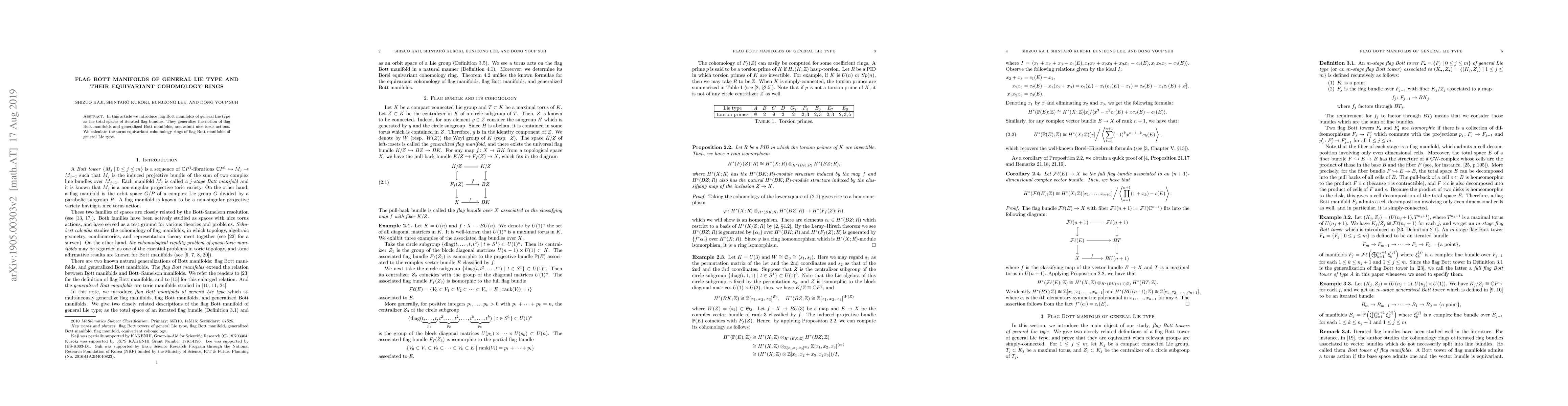 Summary: This paper introduces flag Bott manifolds of general Lie type as iterated flag bundle total spaces, extending existing notions, and computes their torus equivariant cohomology rings, showcasing their elegant torus actions.