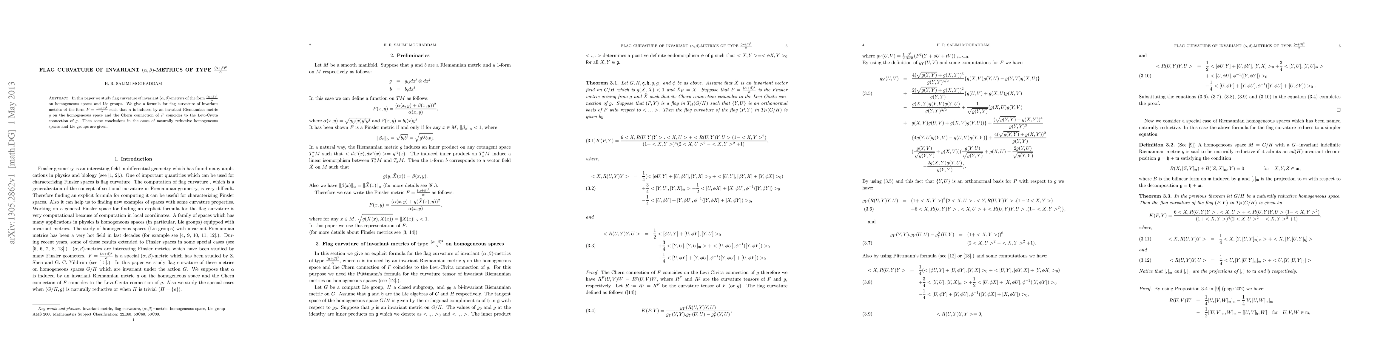 This paper derives a formula for the flag curvature of a specific class of invariant $(\alpha,\beta)$-metrics on homogeneous spaces and Lie groups, establishing connections between these metrics and the Levi-Civita connection. It also draws conclusions for naturally reductive homogeneous spaces and Lie groups.