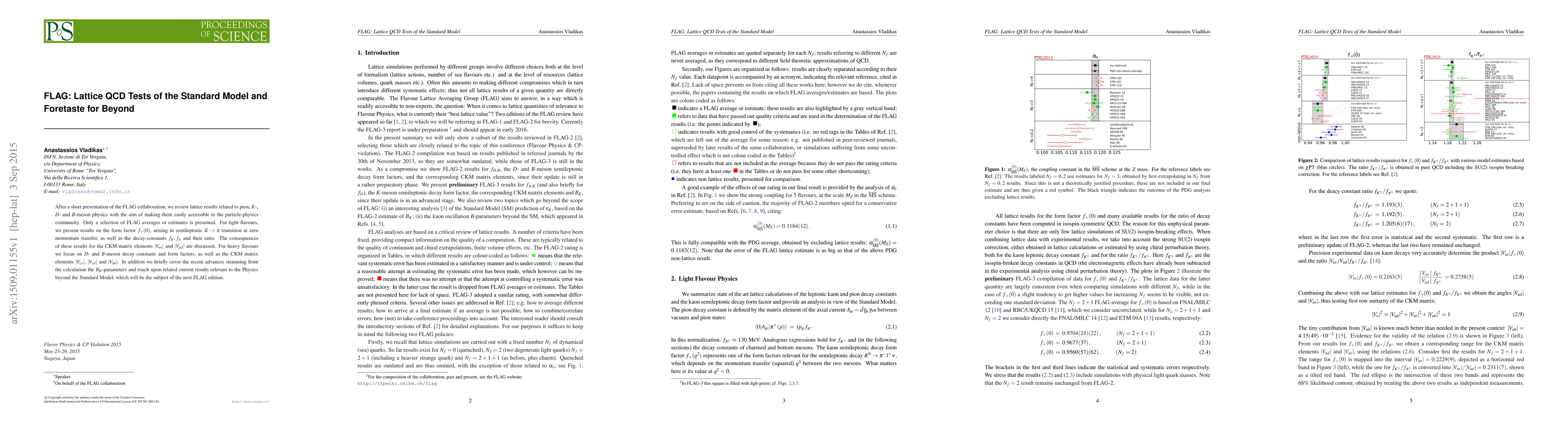 After a short presentation of the FLAG collaboration, we review lattice results related to pion, $K$-, $D$- and $B$-meson physics with the aim of making them easily accessible to the particle-physics community. Only a selection of FLAG averages or estimates is presented. For light flavours, we present results on the form factor $f_+(0)$, arising in semileptonic $K \rightarrow \pi$ transition at zero momentum transfer, as well as the decay-constants $f_K,f_\pi$ and their ratio. The consequences of these results for the CKM matrix elements $|V_{us}|$ and $|V_{ud}|$ are discussed. For heavy flavours we focus on $D$- and $B$-meson decay constants and form factors, as well as the CKM matrix elements $|V_{cs}|$, $|V_{cd}|$ and $|V_{ub}|$. In addition we briefly cover the recent advances stemming from the calculation the $B_K$-parameters and touch upon related current results relevant to the Physics beyond the Standard Model, which will be the subject of the next FLAG edition.