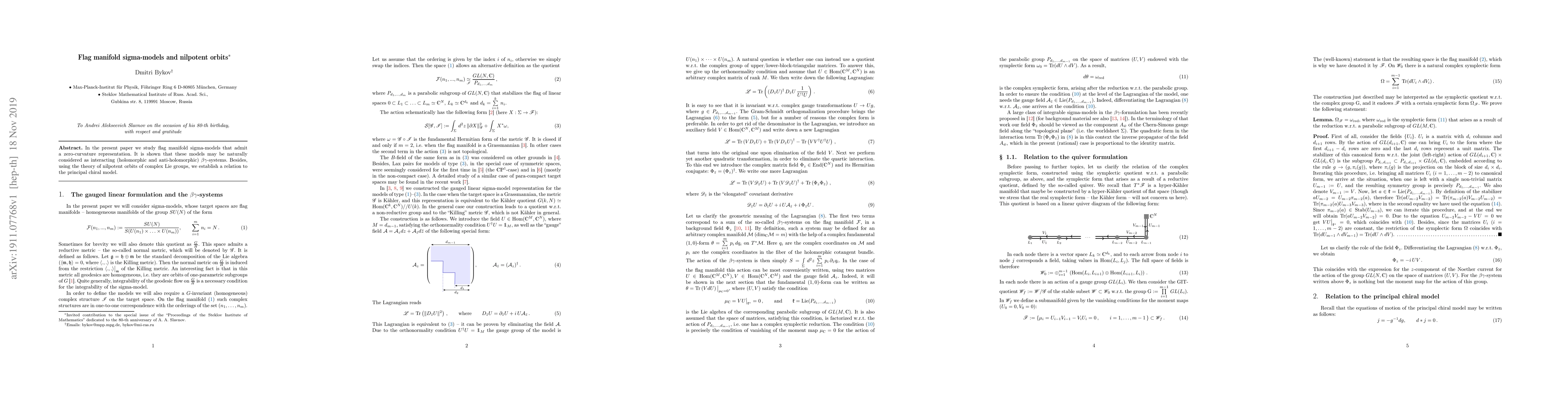 Summary: This paper investigates flag manifold sigma-models with zero-curvature representations, showing they correspond to interacting $\beta\gamma$-systems, and connects these models to the principal chiral model via the theory of nilpotent orbits of complex Lie groups.